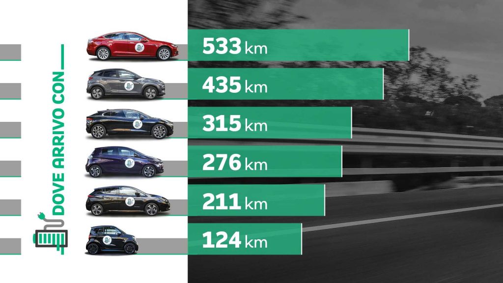 I veicoli elettrici, inoltre, non hanno parte dei rischi potenziali connessi all’utilizzo di auto a combustione; oppure non possono essere utilizzate per tratte in media superiori ai 400-450 km, costringendo alla sosta, come mostrato dall’infografica presente qui in basso. Ancora, vengono di solito utilizzate per un chilometraggio inferiore rispetto a modelli analoghi a benzina o diesel.