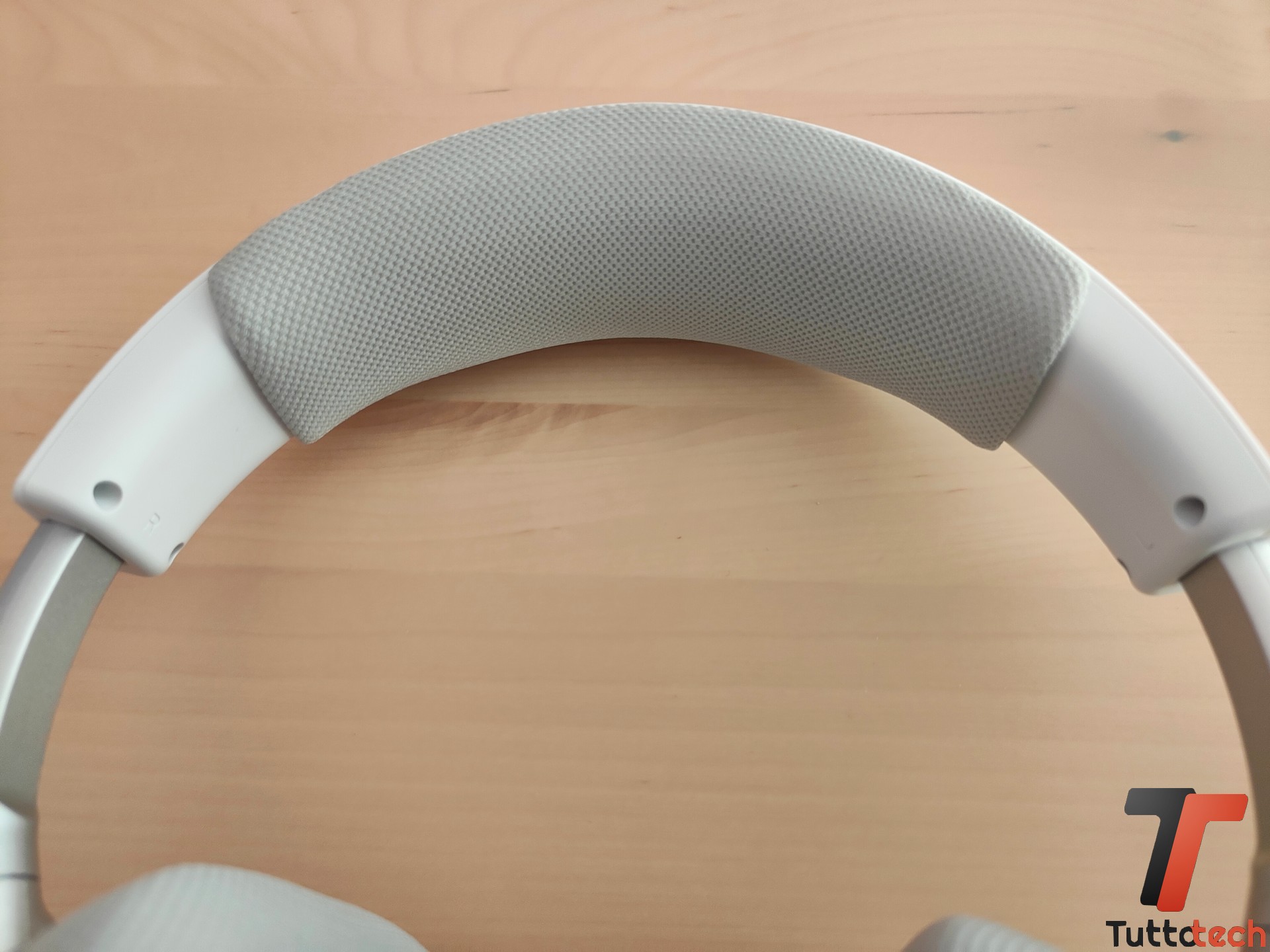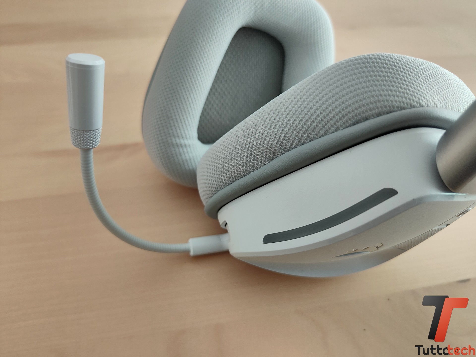 Quest’ultimo, imbottito con spugna e rivestito sempre con tessuto traspirante, permette anche una certa regolazione per adattarsi alla testa e alle esigenze ergonomiche dell’utente; anche l’opzione scelta per il microfono ci è piaciuta, non solo perché è flessibile e ingombra poco, ma anche per via del supporto alla modalità Flip-To-Mute (della qualità del suono parleremo dopo).