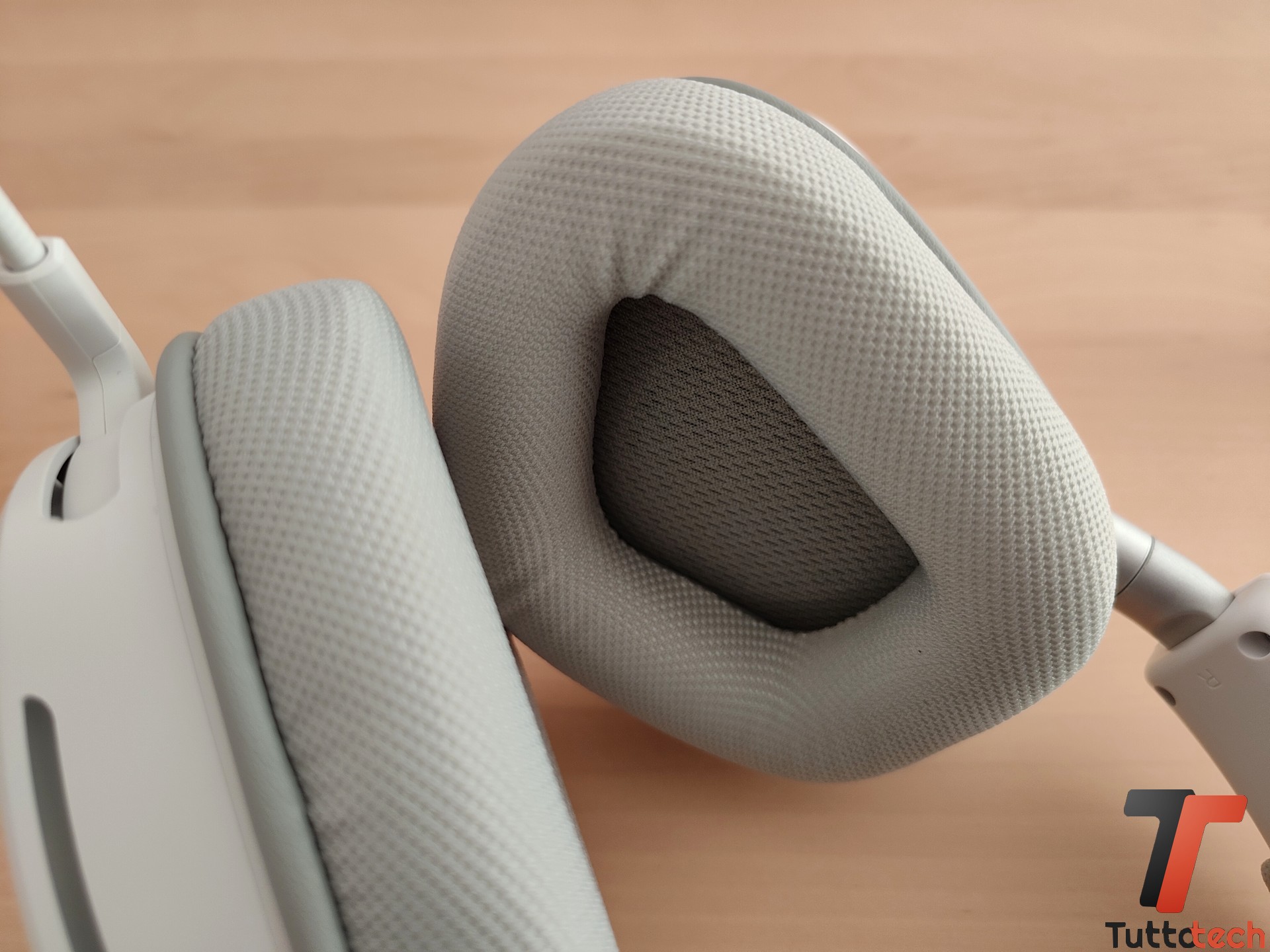 Tornando al reparto audio e relative specifiche, partiamo dai driver dinamici al neodimio da 50 mm che si abbinano a un microfono omnidirezionale con una resa che ci ha un po’ sorpreso. Riguardo i driver da 50 mm, segnaliamo che la risposta in frequenza va da 20 a 20.000 Hz, mentre per il microfono questo range passa da 10 Hz a 10.000 Hz, in grado sostanzialmente di soddisfare tutto quel segmento di utenza che non ha particolari pretese.