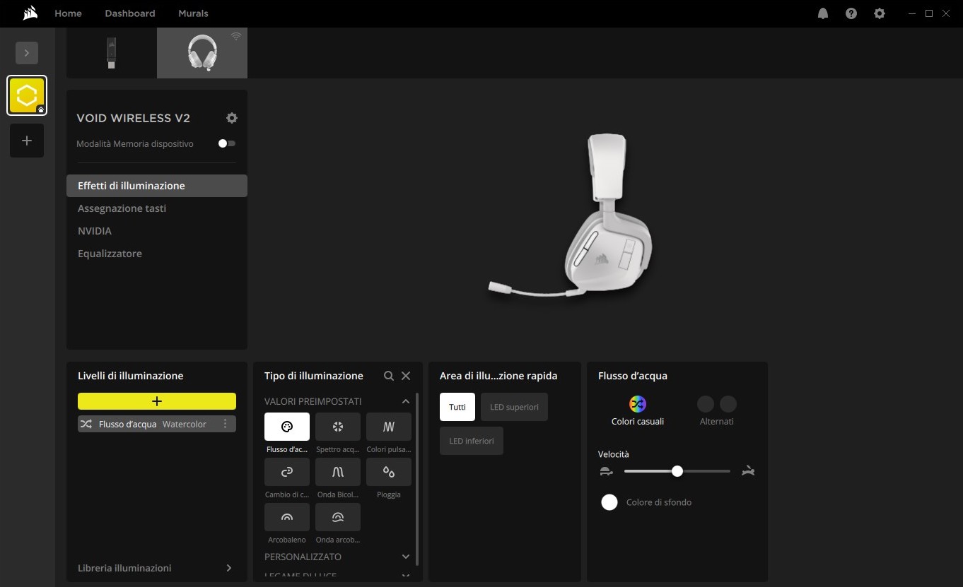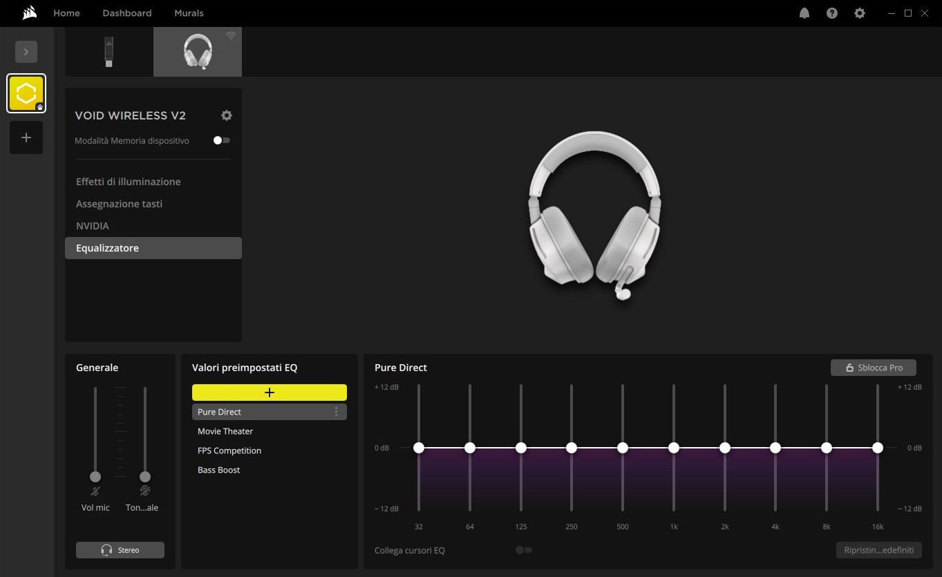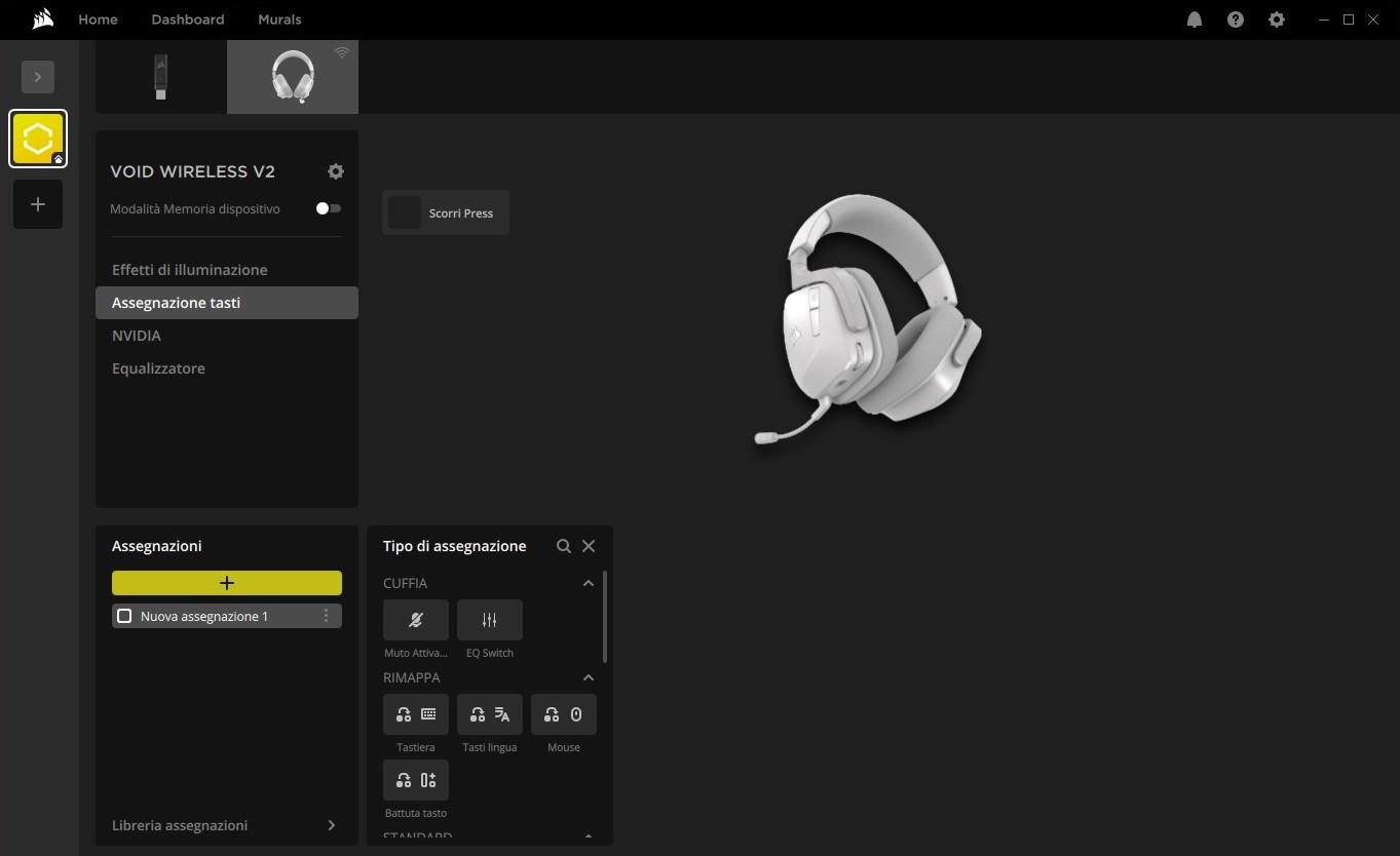 Oltre a opzioni come gli effetti RGB, lo stato della batteria con tanto di notifiche, i comandi vocali e l’aggiornamento automatico del firmware, su Corsair iCUE potremo personalizzare le funzioni dei tasti e gestire personalmente l’equalizzazione dei vari profili con possibilità di salvare le nostre impostazioni preferite e facilmente richiamabili.