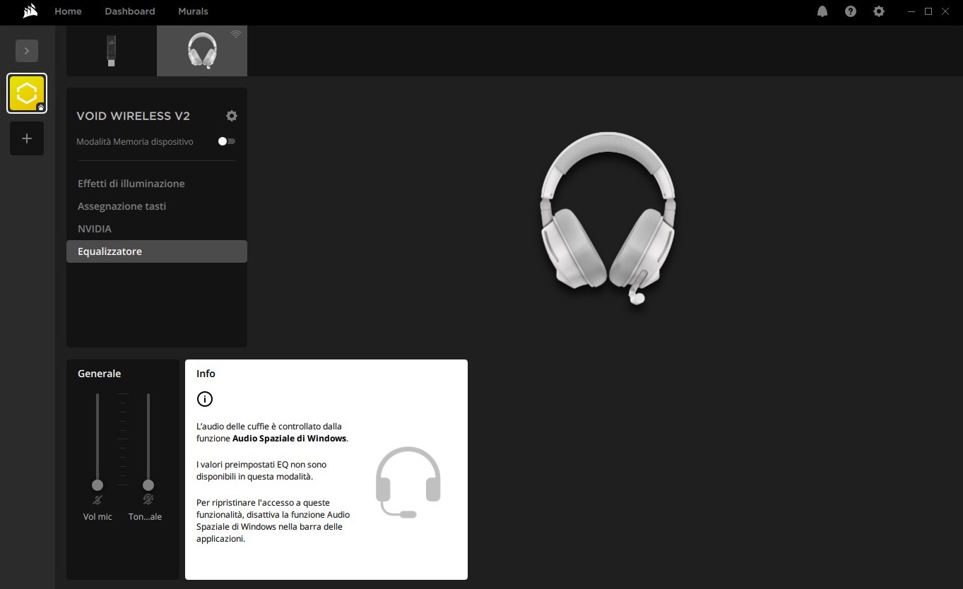 C’è da precisare che quando abilitiamo l’audio spaziale spariscono le opzioni di equalizzazione su iCUE (per ovvi motivi software), mentre l’utility Corsair si conferma ancora una volta molto ricca di opzioni anche per queste nuove cuffie.