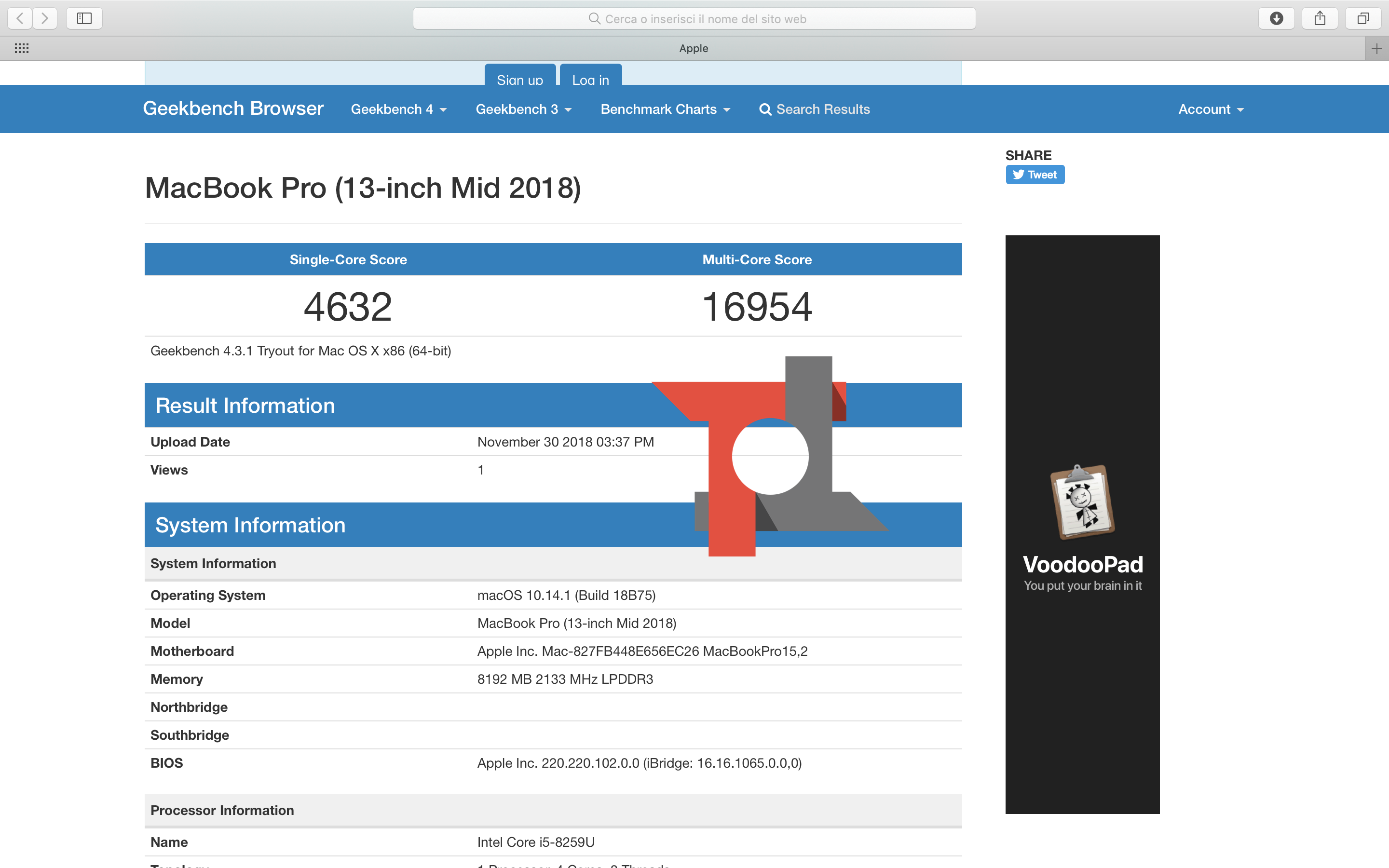 Presente anche la nuova scheda grafica Intel Iris Plus 655, con 1,5 GB di VRAM integrata, e il chip T2 dedicato alla gestione di alcune funzioni specifiche (come Siri) e dei dati sensibili.