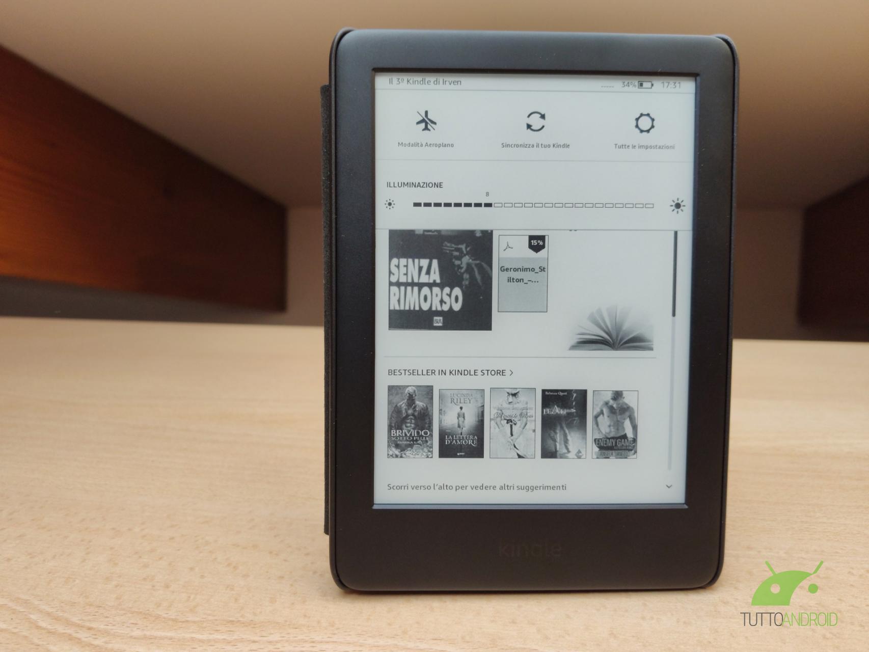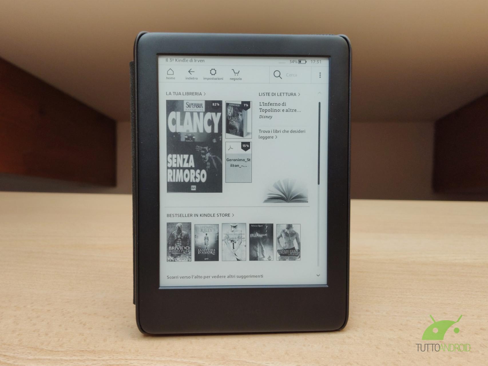 La versione da testata non mostra le offerte speciali, visibili peraltro solo nella schermata di standby e dunque non fastidiose nella fase di lettura. La cover si è dimostrata molto comoda, sia per proteggere lo schermo da graffi e cadute, sia per la riattivazione del dispositivo. È comunque presente un tasto nella parte inferiore, a fianco del connettore microUSB, per accendere o spegnere il lettore.