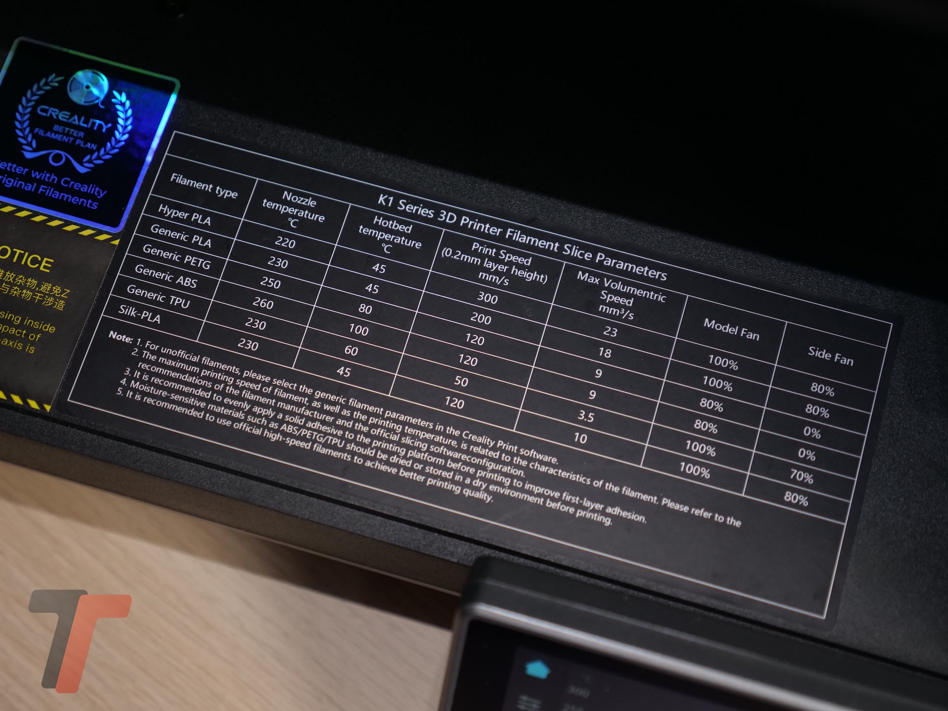 Fra le altre caratteristiche e punti di forza è da segnalare la presenza di un sensore di esaurimento del filamento che consente alla stampante di capire quando il rotolo si esaurisce per mettere in pausa la stampa e attende il refill. Il piatto inoltre è magnetico e rimovibile, perfetto per tirare fuori la stampa e procedere al distacco in un secondo momento, attenzione solo ad aspettare il tempo di raffreddamento prima di toccarlo.