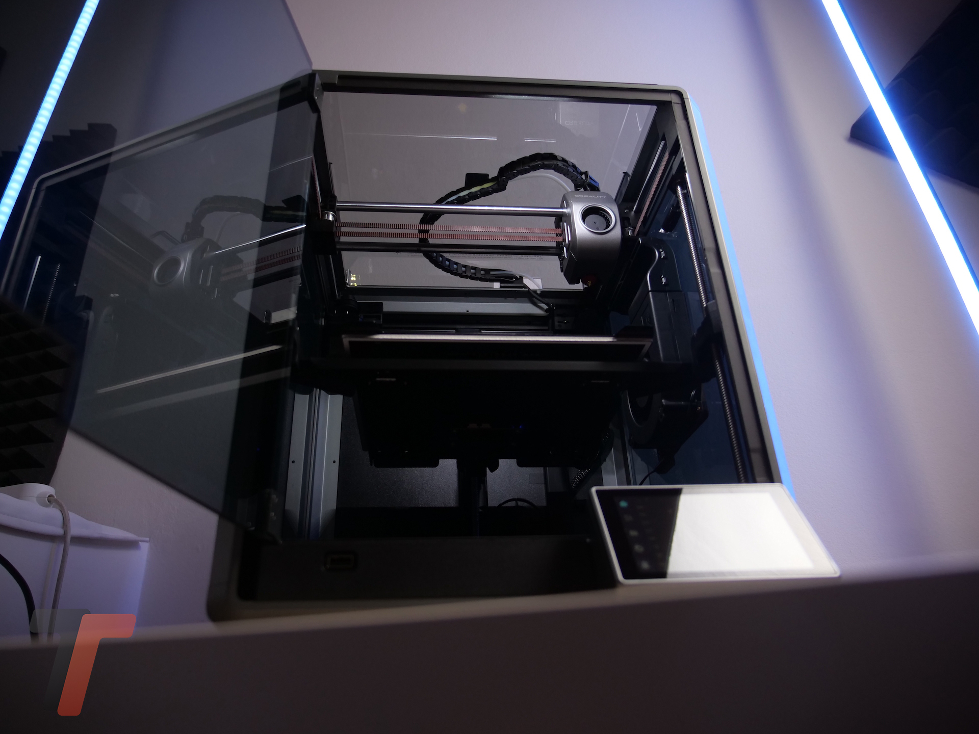 Esteticamente la Creality K1 è molto bella e moderna e può fungere tranquillamente da arredo che arricchisce la stanza in cui si trova. Questo è uno dei principali pregi perché seppur il prezzo contenuto l’azienda non ha risparmiato sulle finiture e grazie ai pannelli di vetro trasparenti si può sempre ammirare l’interno.