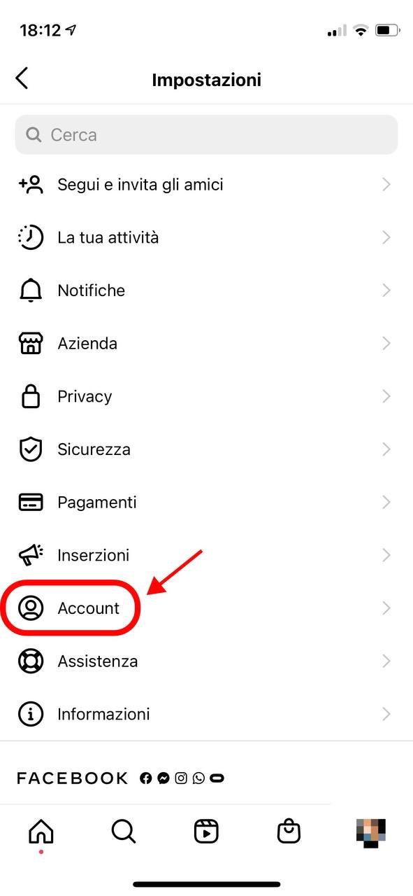 - Individuiamo l’immagine del nostro profilo nella barra in basso a destra a facciamo tap su di essa;
