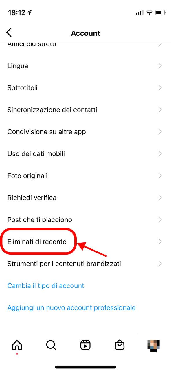 - individuiamo il pulsante Eliminati di recente, posto in basso nella lista.