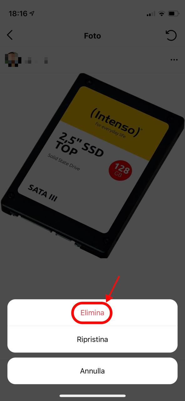 - In alto a destra premiamo sull’icona formata da tre puntini, un menù a tendina comparirà chiedendoci l’azione da intraprendere: Elimina o Ripristina;
