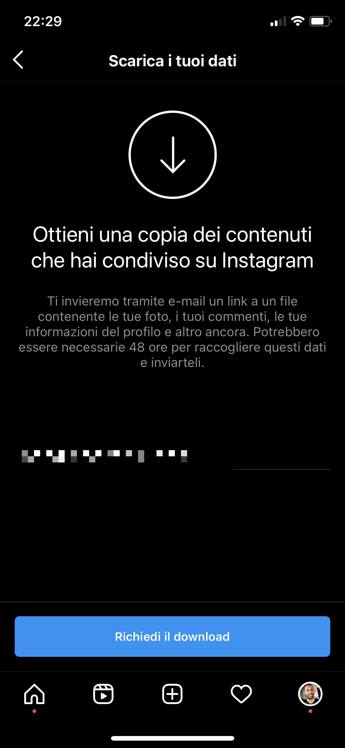 Fare una copia di backup dei contenuti postati su Instagram per motivi personali è davvero semplice, in quanto l’azienda mette a disposizione uno strumento apposito per effettuare questa operazione. Per farlo basta cliccare su questo link e verremo reindirizzati alla pagina ufficiale di Instagram dove potremo richiedere una copia di tutti i media condivisi sul social: non soltanto foto e video, ma anche i commenti alle nostre immagini e le informazioni condivise sul nostro profilo. Basta loggare con le nostre credenziali ed inserire la mail a cui vogliamo venga inviato il link per scaricare foto da Instagram su PC.