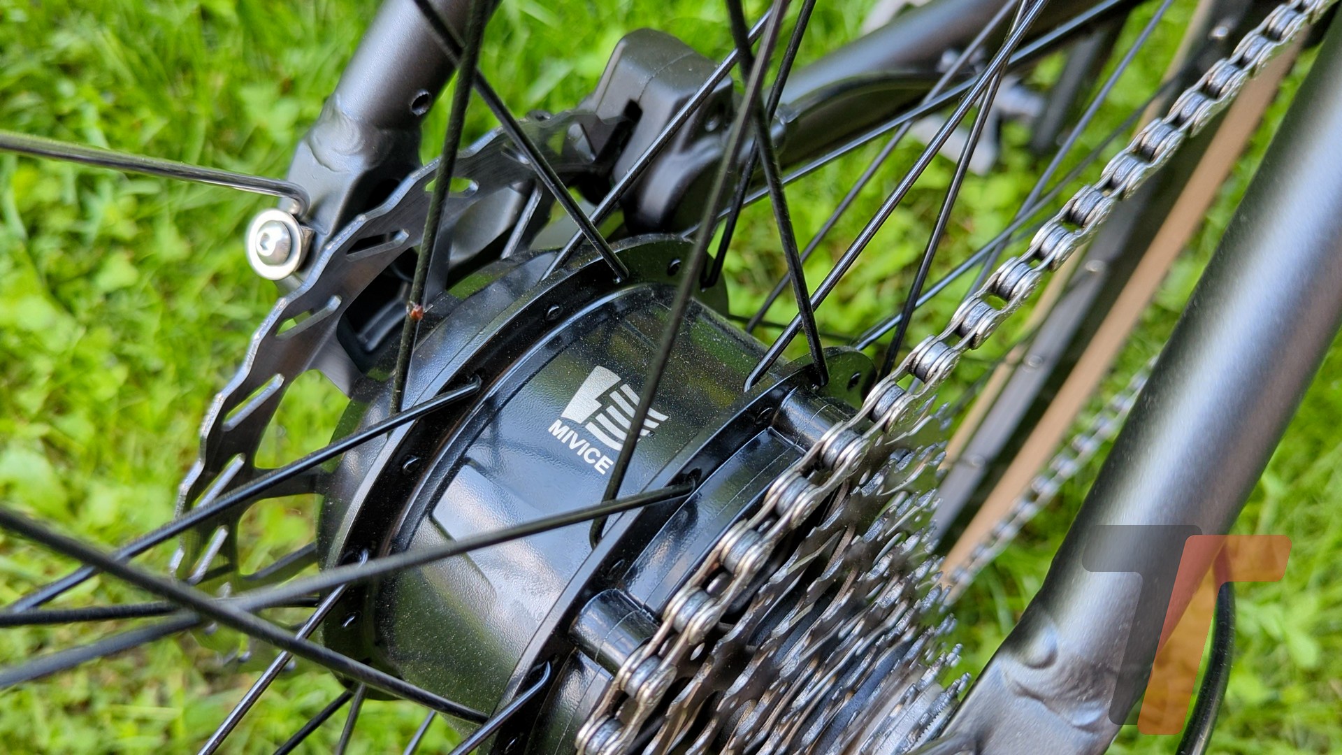 La Fiido C21 è una bici montata discretamente bene con freni Tektro idraulici a 2 pistoncini abbinati a dischi da 160 mm e cambio L-Twoo R5 a 9 rapporti con monocorona anteriore. Il Motore posteriore è un Mivice M070 con una potenza nominale di 250 Watt e coppia di 72 nm. I cerchi sono da 28 pollici in alluminio, quello anteriore ha un aggancio con perno passante, utile per rendere tutto l’avantreno più resistente.