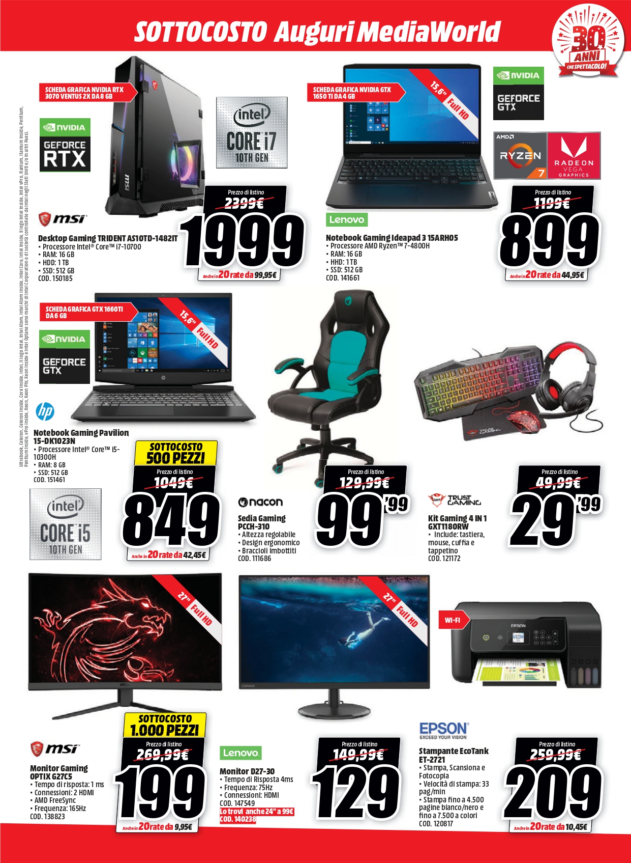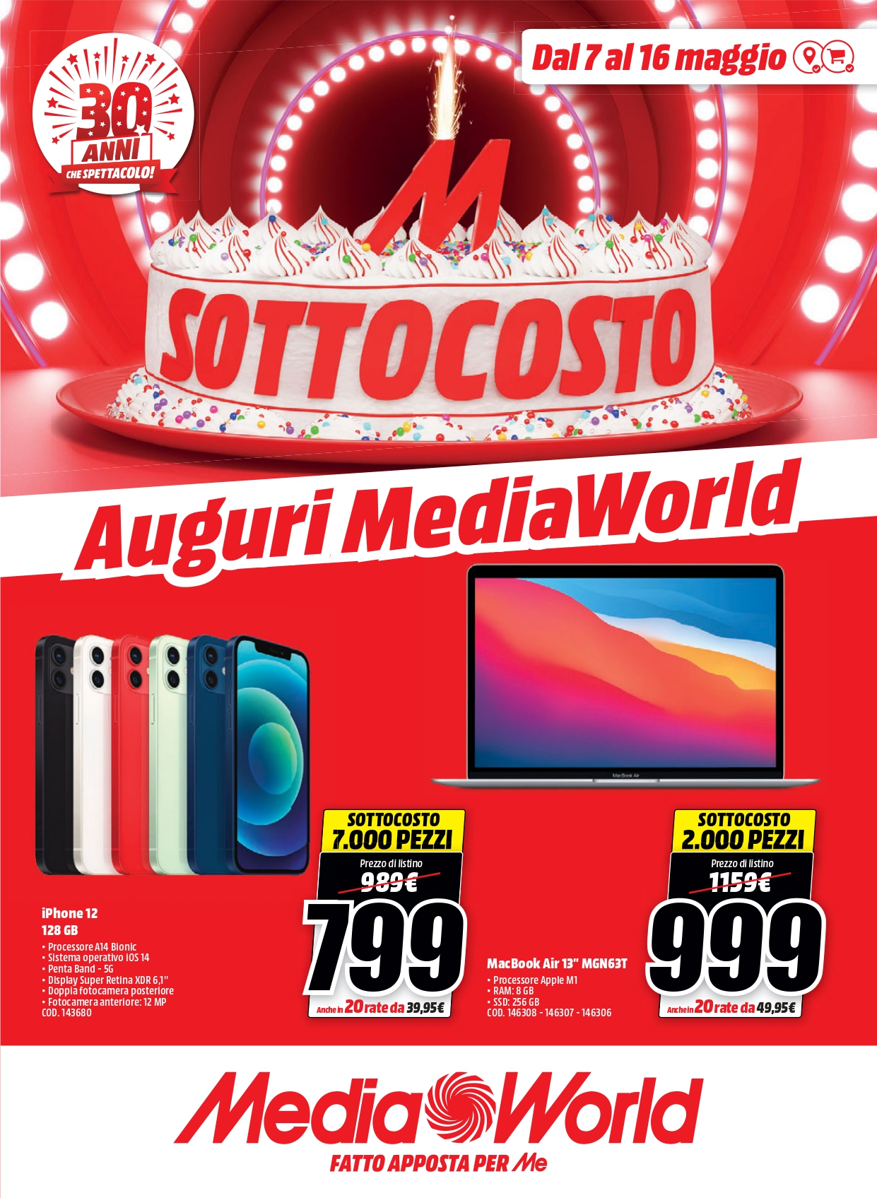 MediaWorld festeggia i suoi 30 anni lanciando un grande Sottocosto, valido sia online sia in negozio. Il nuovo volantino è disponibile dal 7 al 16 maggio 2021 e comprende tantissimi prodotti tech in offerta, con prezzi anche al minimo storico.