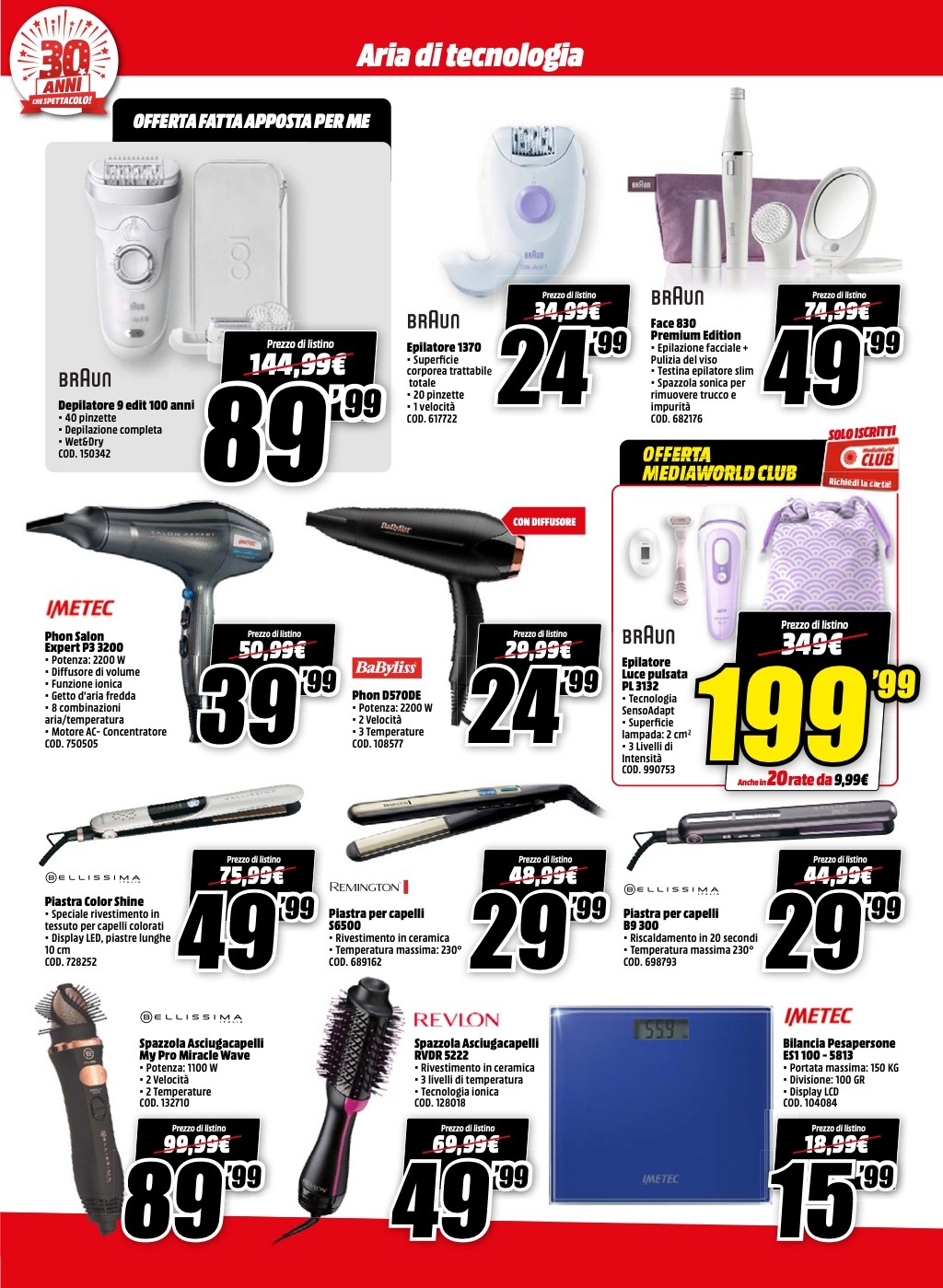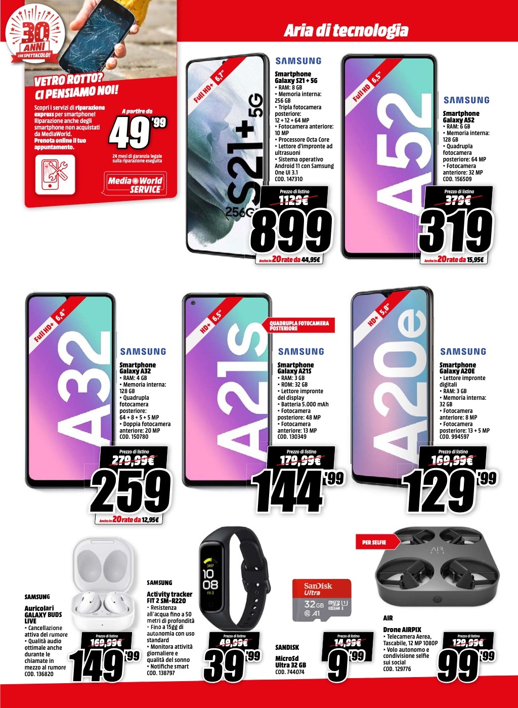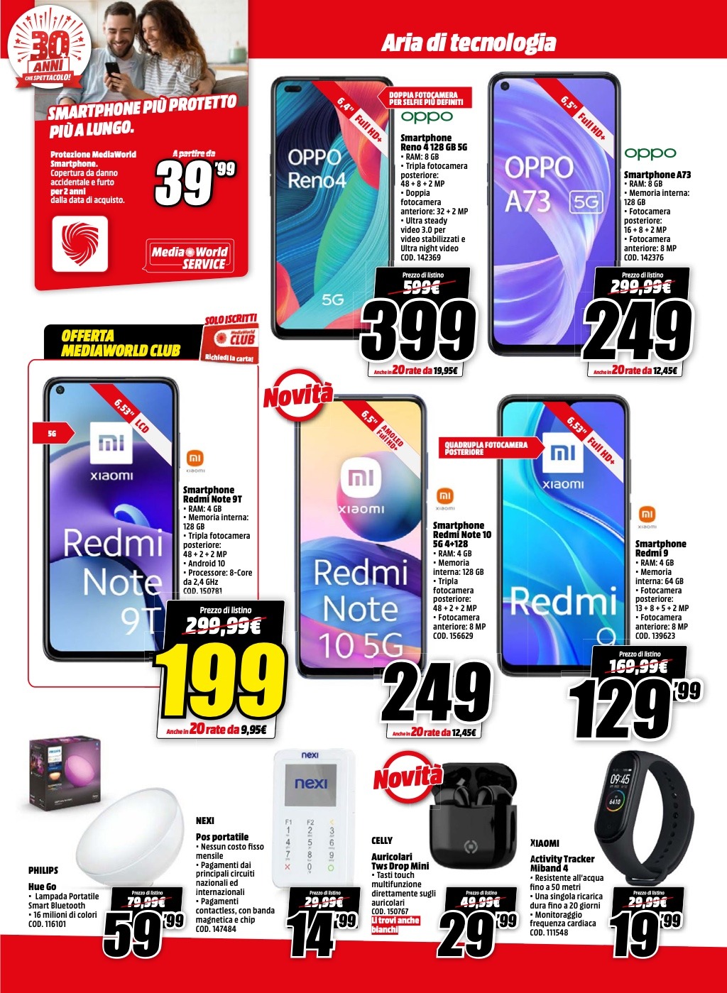 Ci sono offerte di tutti i tipi, dagli smartphone agli smartwatch, passando per computer ed elettrodomestici, nel nuovo volantino “Aria di Tecnologia” di MediaWorld, valido a partire da oggi e fino al prossimo 31 maggio. Scopriamo senza indugi quali sono i prodotti in promozione, suddivisi per tipologia.