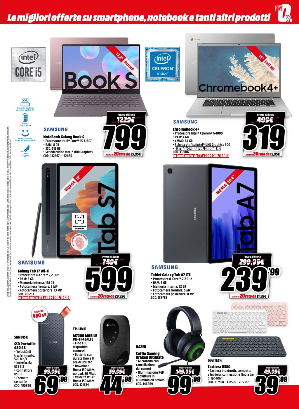 - Samsung Galaxy Tab A7 LTE 3-32 GB a 239,99 euro invece di 299,99 euro