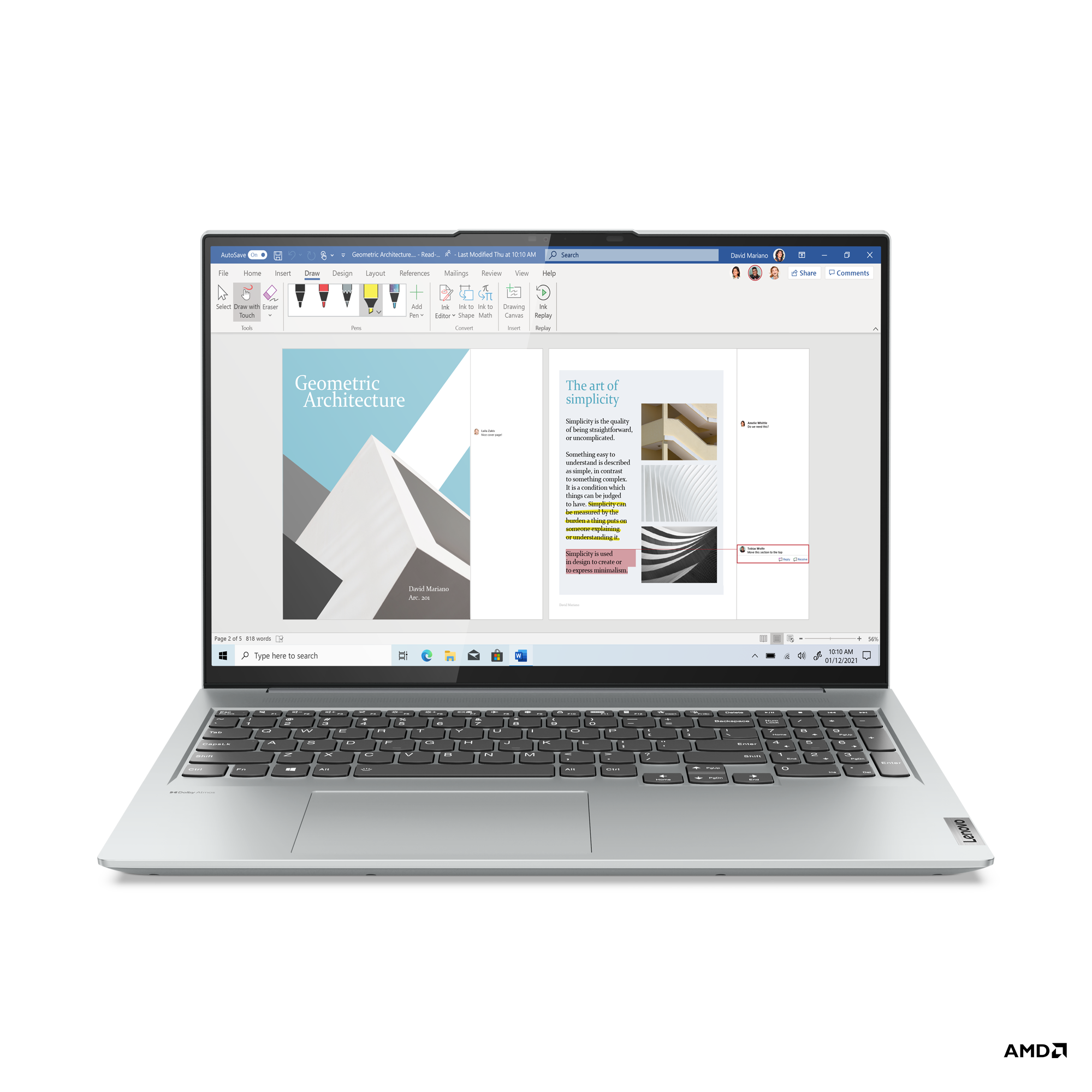 Partiamo dal più compatto, Lenovo Yoga Slim 7 Carbon, che può contare su un processore AMD Ryzen 7 5800U, con GPU AMD Radeon integrata oppure NVIDIA GeForce MX450. Lato memorie abbiamo fino a 16 GB di RAM LPDDR4x e fino a 1 TB di SSD PCIe M.2, mentre per quanto riguarda l’autonomia gli acquirenti potranno disporre di una batteria da 61 WHr con Rapid Charge Express (15 minuti per circa 3 ore di utilizzo): in base a quanto sostiene il produttore è sufficiente per più di 14 ore di uso, anche grazie alla gestione con Lenovo Q-Control.