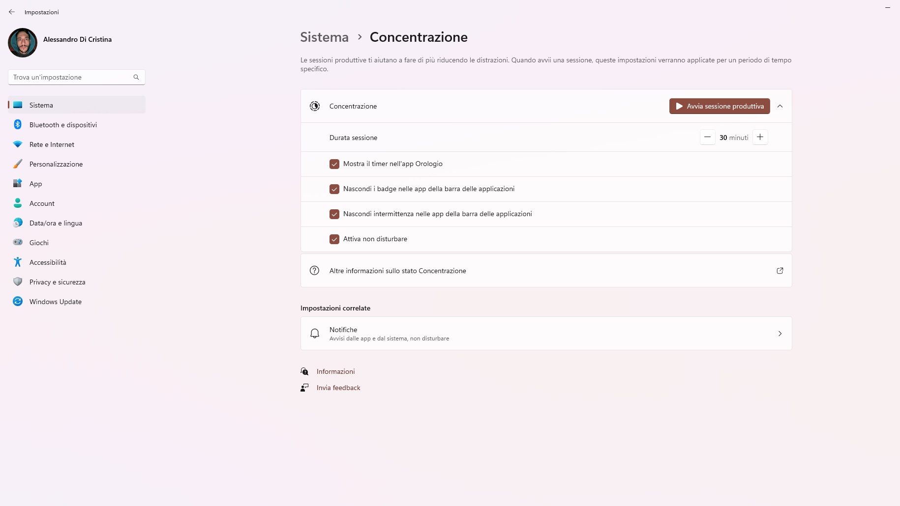 Altre due novità di Windows 11 2022 Update sono le Sessioni produttive (Focus mode) e la rinnovata modalità Non disturbare, sviluppate per ridurre al minimo le distrazioni e consentire all’utente di portare a termine un determinato compito. Quando sia avvia una Sessione produttiva, Windows attiva automaticamente la modalità Non disturbare che silenzia le notifiche e disattiva i badge della barre delle applicazioni. La funzionalità Sessioni produttive è integrata nell’app Orologio (quella di sistema), che avvia un timer per aiutare l’utente a concentrarsi, ricordandogli anche di fare delle pause.