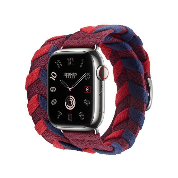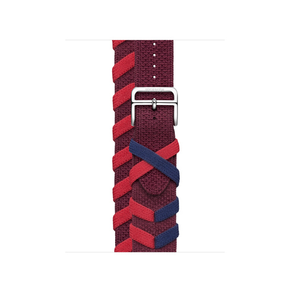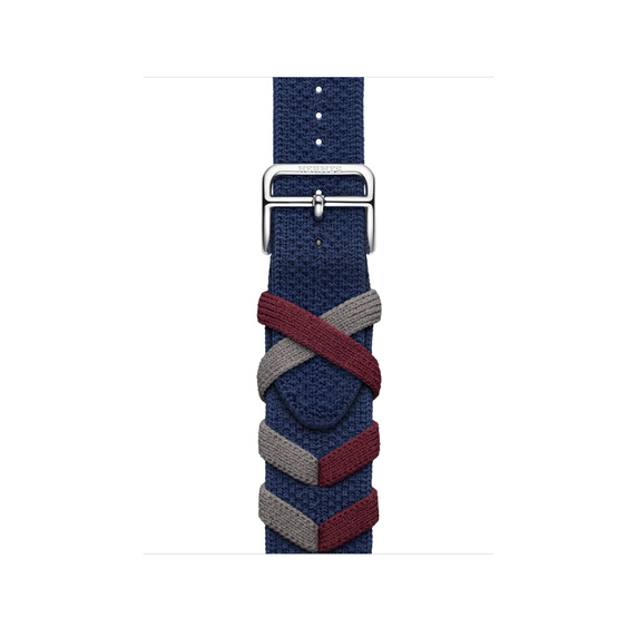“Il cinturino Double Tour Bridon si avvolge due volte attorno al polso. È realizzato in tessuto lavorato a maglia a trama continua, intrecciato a mano per creare un motivo chevron tridimensionale“. Il cinturino in questione è disponibile per i soli Apple Watch da 41 mm ed è disponibile in due differenti colorazioni: Rouge H e Navy.