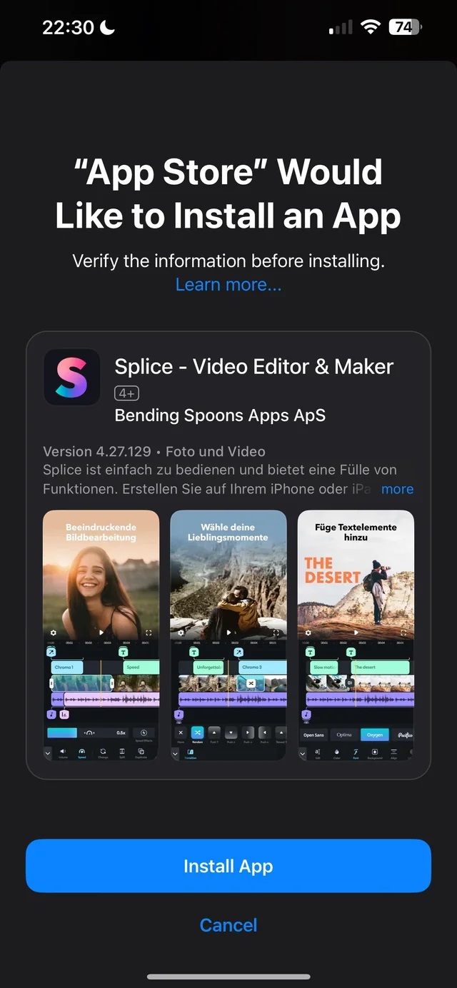 Nuova schermata di verifica per il download di app da App Store (solo UE)