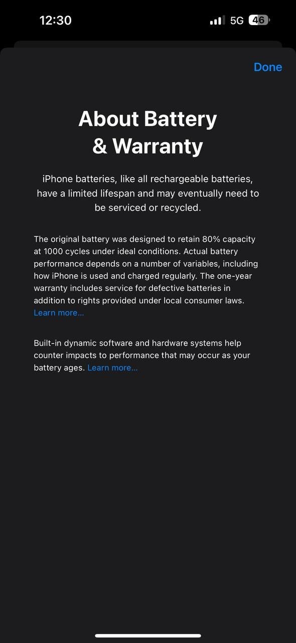 La beta 4 di iOS 17.4 aggiunge anche una nuova splash screen (schermata di benvenuto) su “Batteria e Garanzia” che informa l’utente del fatto che la batteria di iPhone è fatta per mantenere la capacità dell’80% per 1000 cicli di ricarica, anche se il documento di supporto ufficiale parla di 500 cicli (possibile spoiler per batterie più longeve nei futuri iPhone?). A ogni modo, queste novità sono disponibili esclusivamente per i più recenti iPhone 15.