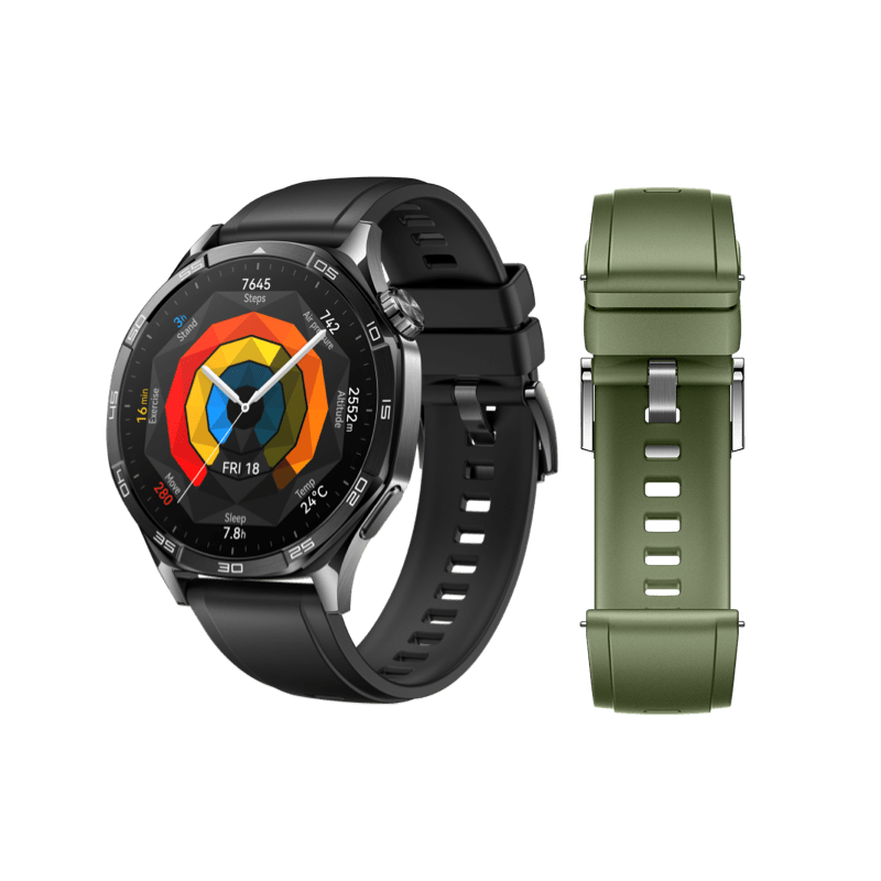 Passando alla variante Pro, la nuova colorazione introdotta dal produttore cinese è quella chiamata Nero Fluoroelastomero + Cinturino Verde, disponibile solo per il modello con cassa da 46 mm.