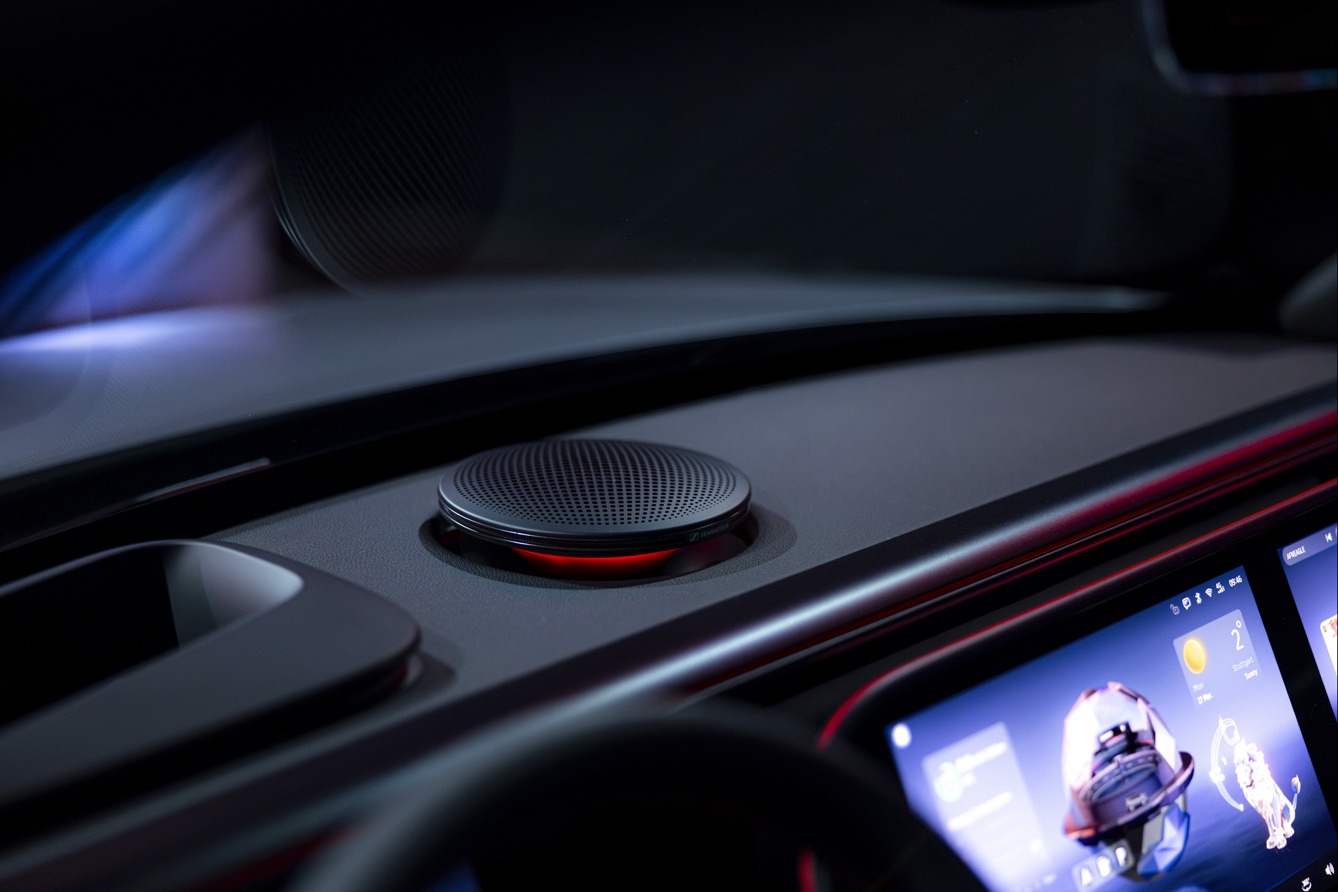 Il sistema audio è di altissima qualità (firmato Sennheiser Signature Sound) e può contare su 20 speaker ad alte prestazioni, uno speaker centrale motorizzato e una potenza complessiva di 1.190 W; per l’ascolto immersivo è supportato il Dolby Atmos 7.1.4.