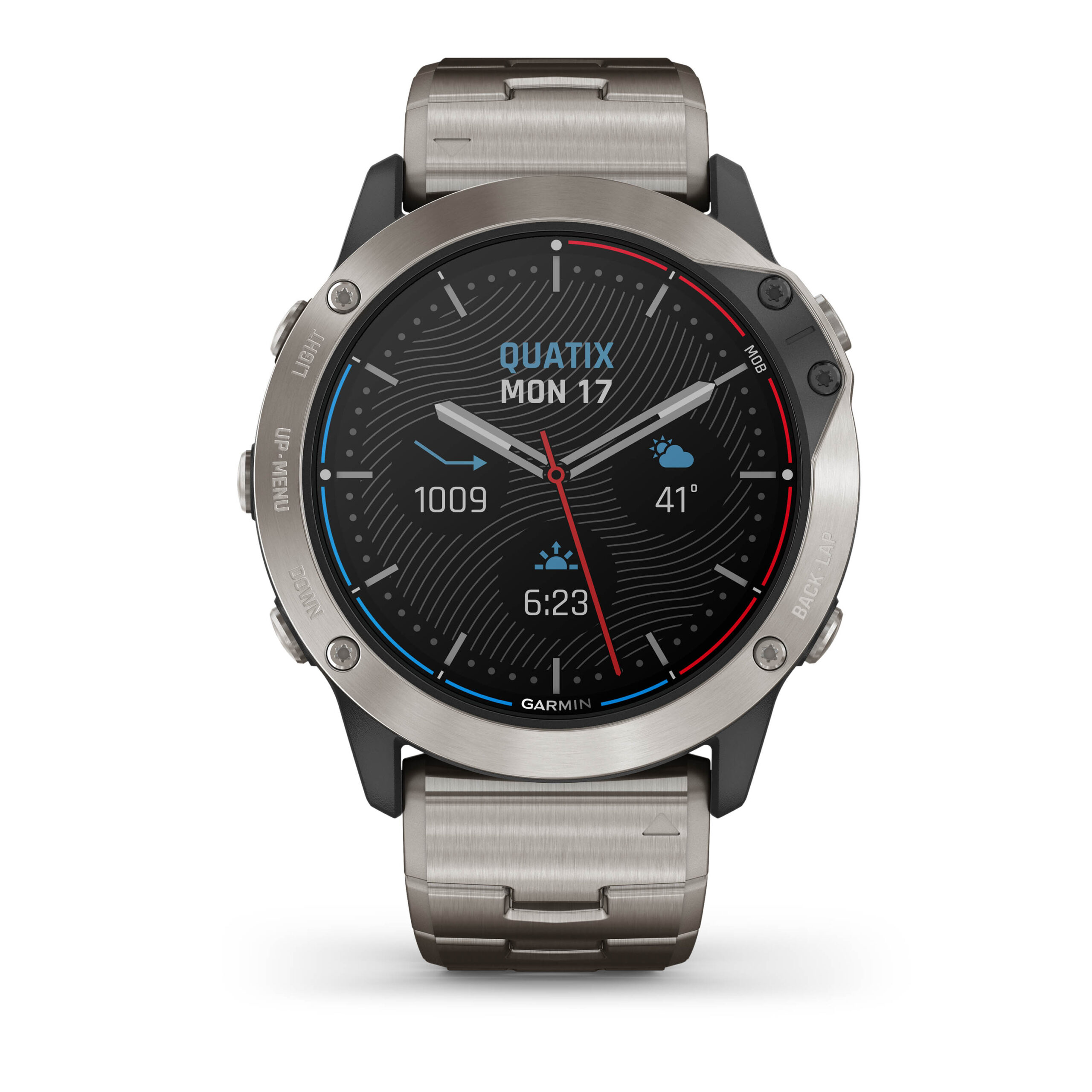 Garmin quatix 6X Solar dispone di una cassa da 51 mm e di un display LED a colori da 1,4″ (280×280 pixel) di tipo Memory-In-Pixel transflettivo. Garmin ha fatto ampio uso di titanio, che ritorna satinato e di grado 2 nella lunetta e nel bracciale con fibbia pieghevole.