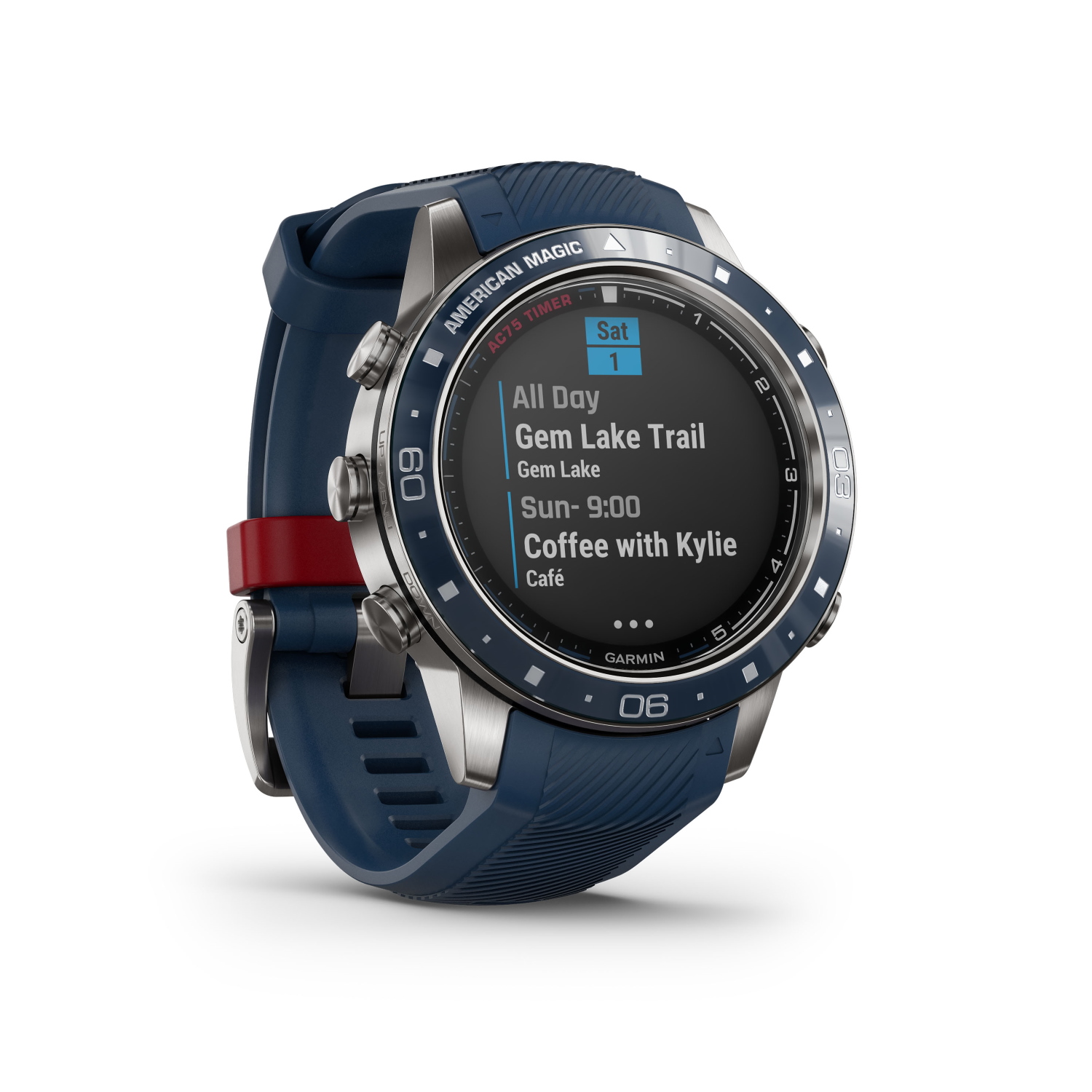Presenti ovviamente Bluetooth, notifiche smart associate allo smartphone, Garmin Pay e app musicali come Spotify e Deezer. A bordo due esclusivi quadranti dedicati alla vela e personalizzati American Magic: uno in stile analogico con il “T-Minus”, il countdown al via della sfida di Auckland del 2021, e uno digitale con il profilo della DEFIANT, monoscafo classe AC75 che sarà usato nella prossima competizione.