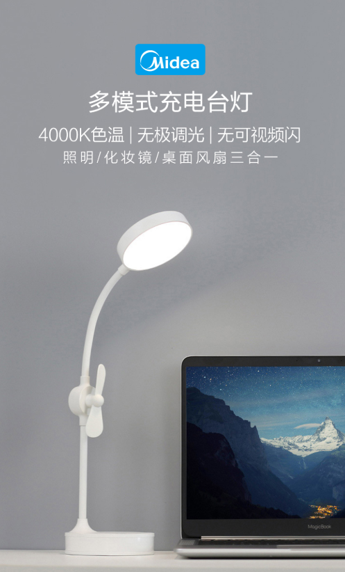 Tale lampada multifunzione di Midea utilizza un LED 4000K che simula la luce naturale, lampada che dispone di una batteria da 1.800 mAh che si ricarica tramite microUSB a 5 watt. Il prezzo? 98 yuan, circa 12 euro.