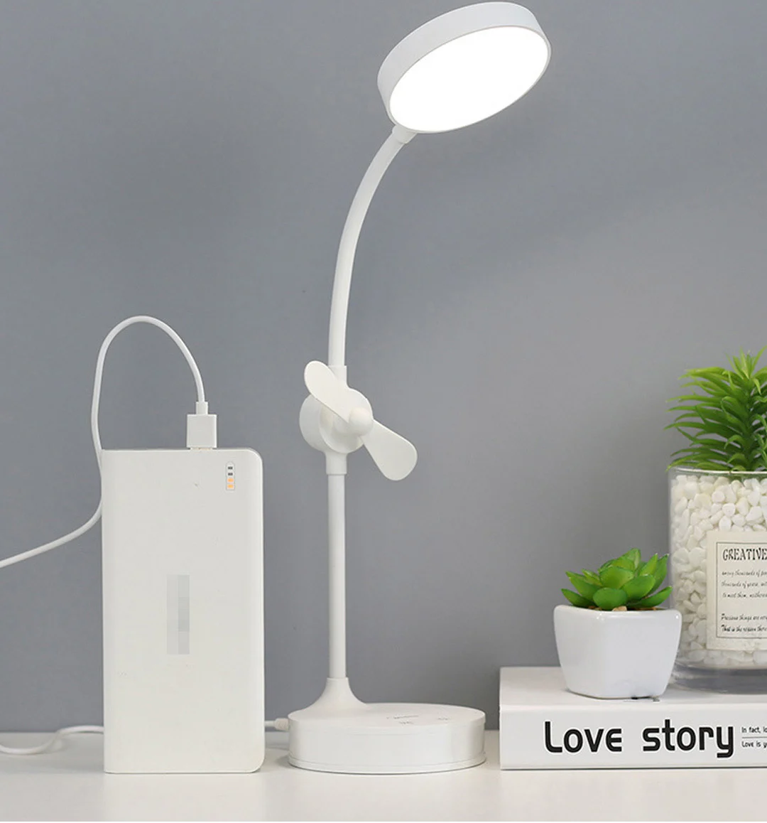 Dotato di una ventola incorporata sul braccio della lampada, funge anche da specchio per il trucco si presenta con un design minimale che flette per la massima regolazione