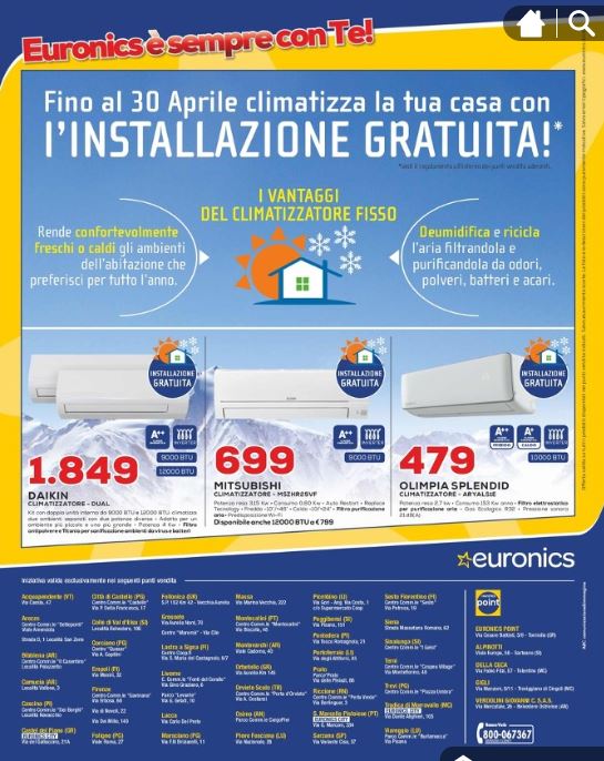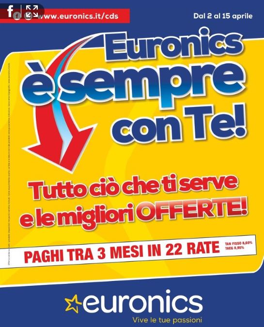 Vi ricordiamo che le offerte di Euronics del volantino in questione sono disponibili fino al prossimo 15 aprile 2020 nei punti vendita Euronics Cds, negozi che trovate specificati nell’ultima pagina della galleria qui sopra.