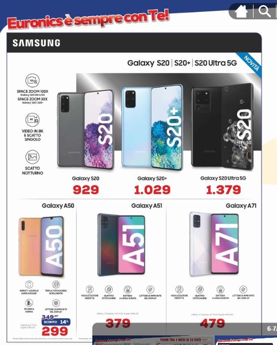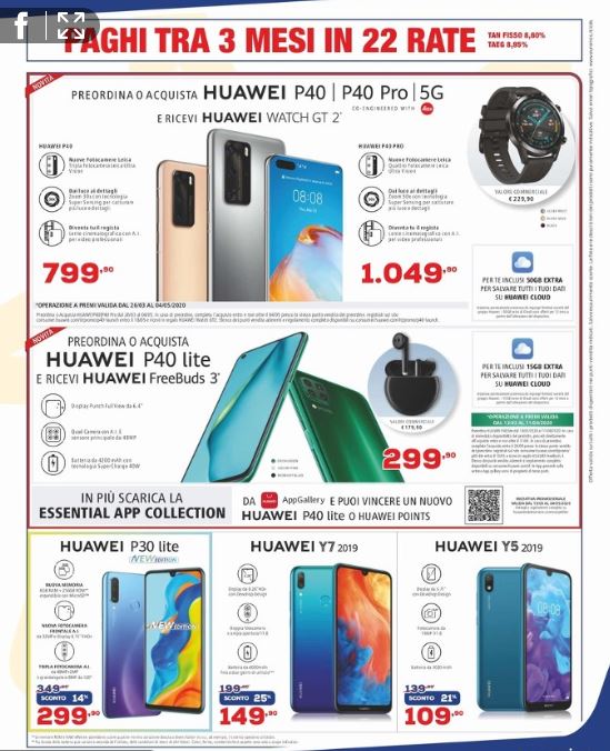 Oltre alla serie Huawei P40, P40 Pro e P40 Lite, tutti quanti a catalogo con i relativi gadget, seppur senza sconti come la famiglia dei Samsung Galaxy S20, nelle pagine del volantino Euronics è sempre con te troviamo citati altri prodotti tech di vario genere. A seguire trovate i più interessanti divisi per categorie. Per tutto il resto, sfogliate voi stessi la galleria in fondo.