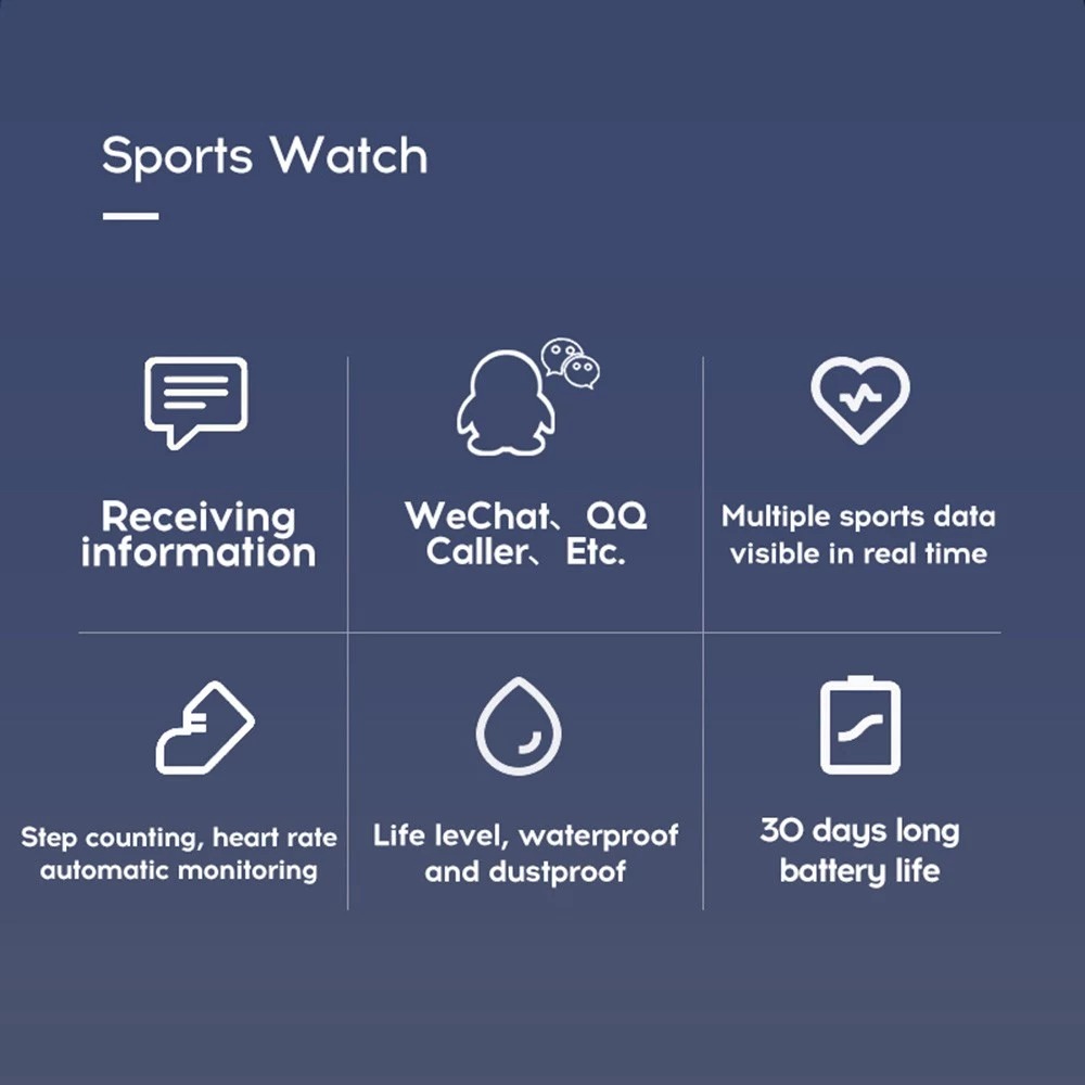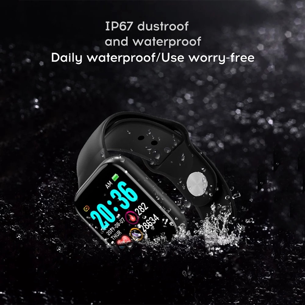 Partiamo con il modello D20, il più economico dei due ma non per questo privo di funzioni molto utili. Troviamo un quadrante rettangolare da 1,3 pollici, un cinturino con sgancio rapido che rivela un connettore USB, per ricaricare lo smartwatch senza bisogno di ulteriori cavi.