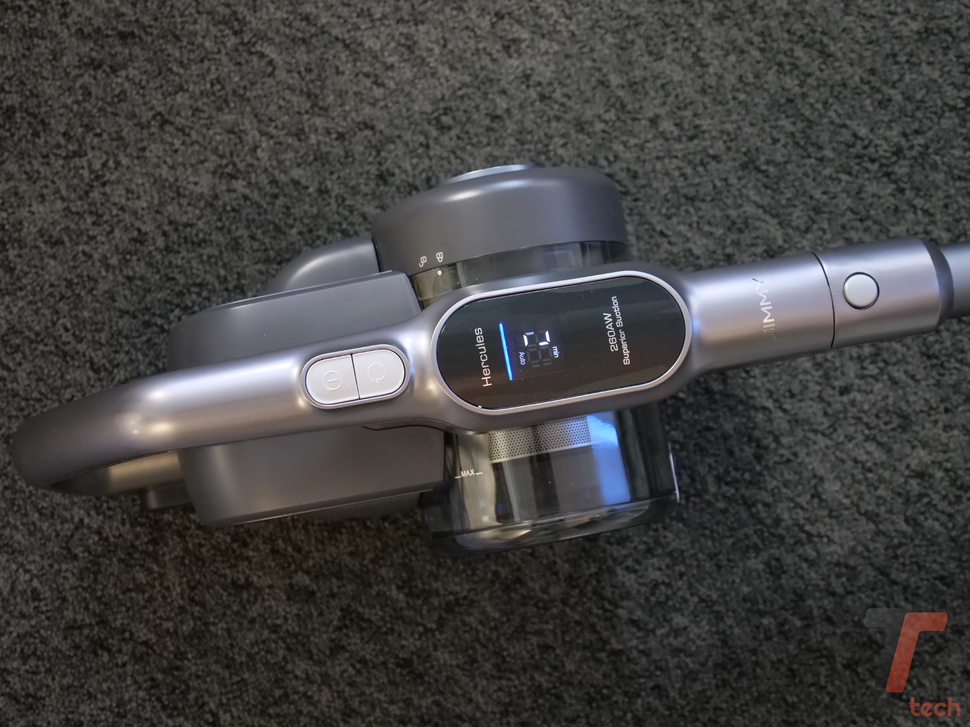 Il cuore tecnologico di Jimmy H11 Pro è il sensore di rilevamento dello sporco, che ci ha davvero convinti. Il display LED mostra in tempo reale il livello di sporco rilevato, cambiando colore a seconda della quantità di sporcizia: rosso per aree molto sporche, blu quando tutto è perfettamente pulito. Questo sistema non solo ci guida visivamente nella pulizia, ma permette all’aspirapolvere di regolare in automatico la potenza di aspirazione, risparmiando batteria quando non serve il massimo della spinta. È una funzione che, una volta provata, diventa difficile da abbandonare.