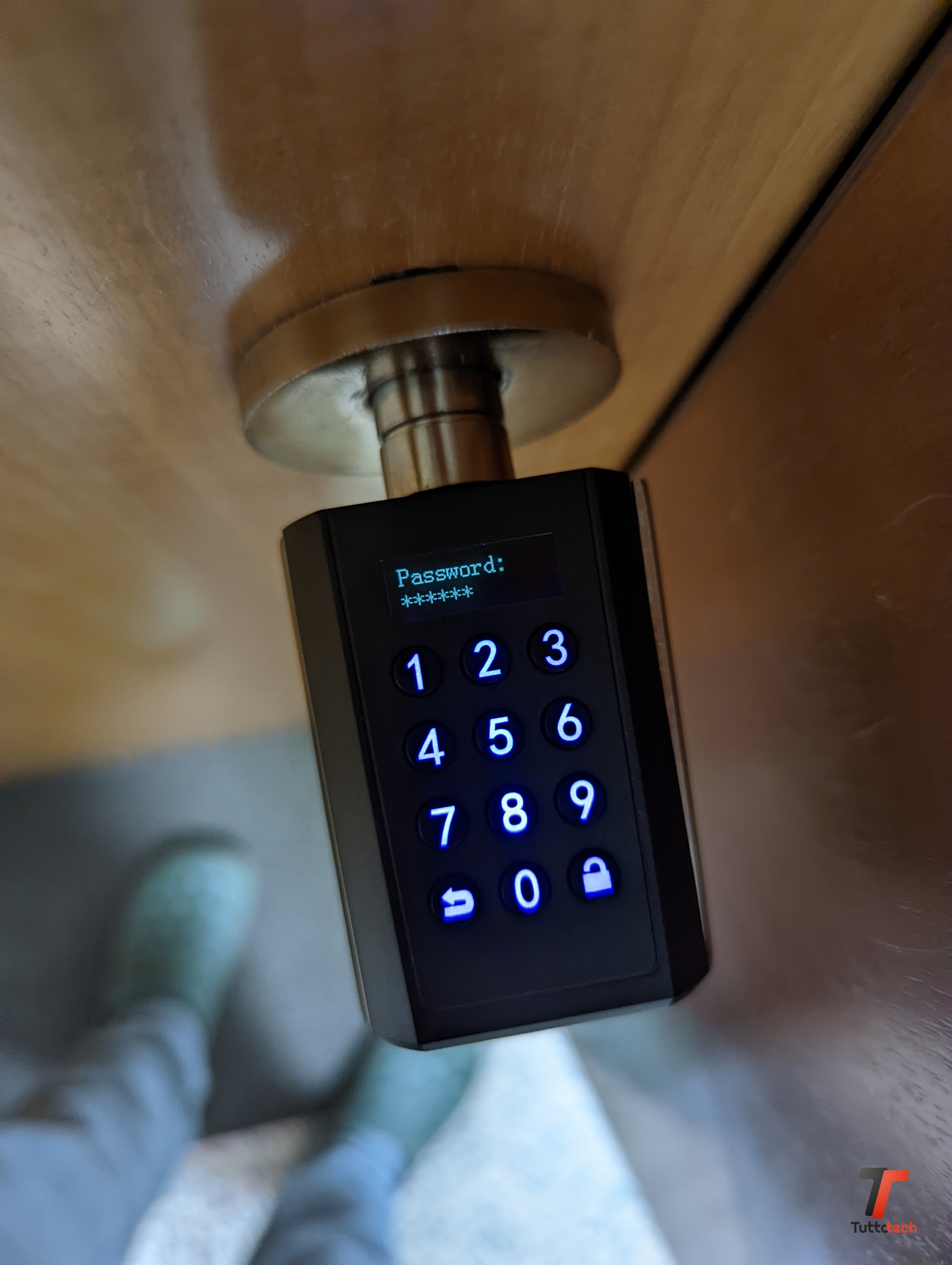Oltre alla possibilità di sbloccare la serratura con lo smartphone, efficace ma decisamente scomoda, è possibile utilizzare un codice di 6 cifre o un tag NFC. Il primo è sicuramente comodo, a meno che non siate smemorati, il secondo è indubbiamente indicato anche per le persone anziane o i bambini. Peccato solo che per inserire il codice o utilizzare il tag NFC sia necessario premere un tasto per “risvegliare” la serratura.