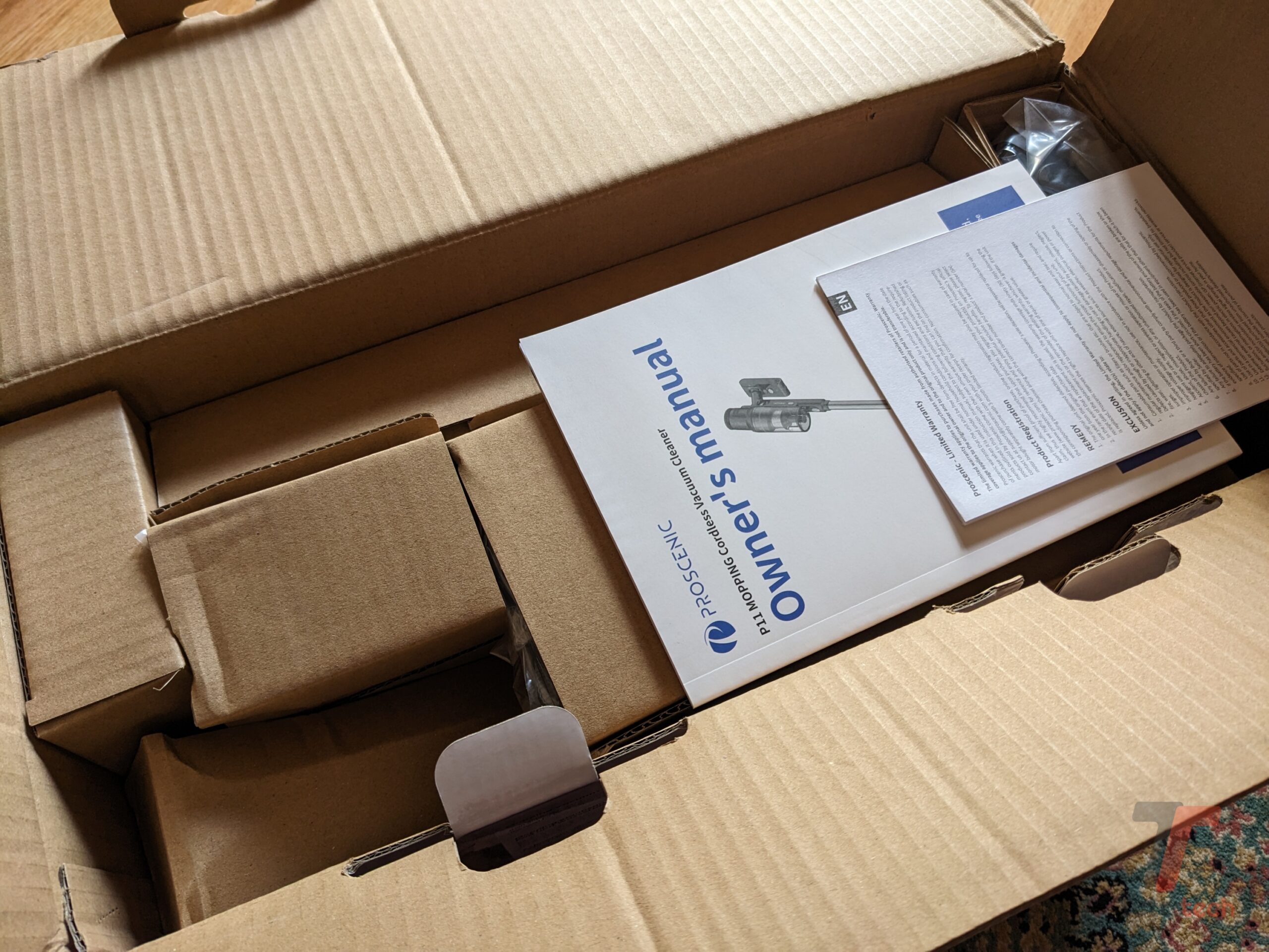 Il primo pensiero appena è stata consegnata dal corriere è andato alla scatola perché è veramente piccola, oltre che leggera, ed è stata una piacevole sorpresa considerando il contenuto di una scopa elettrica completa. Messo da parte lo stupore iniziale dovuto a questa cosa, dopo aver aperto la scatola è stato immediatamente chiaro il perché fosse così piccola: al suo interno c’era una specie di set Lego, con su per giù una decina di componenti da assemblare che insieme avrebbero dato vita alla scopa elettrica. E mettere insieme i pezzi è stato divertente perché ogni componente era ben riposto, protetto da bustine e soprattutto accessibile nella scatola e poi la confezione era accompagnata da un ottimo manuale di istruzioni, nel quale c’è tutto ciò che serve per l’assemblaggio e il funzionamento. Perciò in un paio di minuti la scopa era assemblata e pronta all’uso, senza grattacapi e problemi di alcunché; tutto è stato facile, veloce e fluido, tanto da essere divertente.