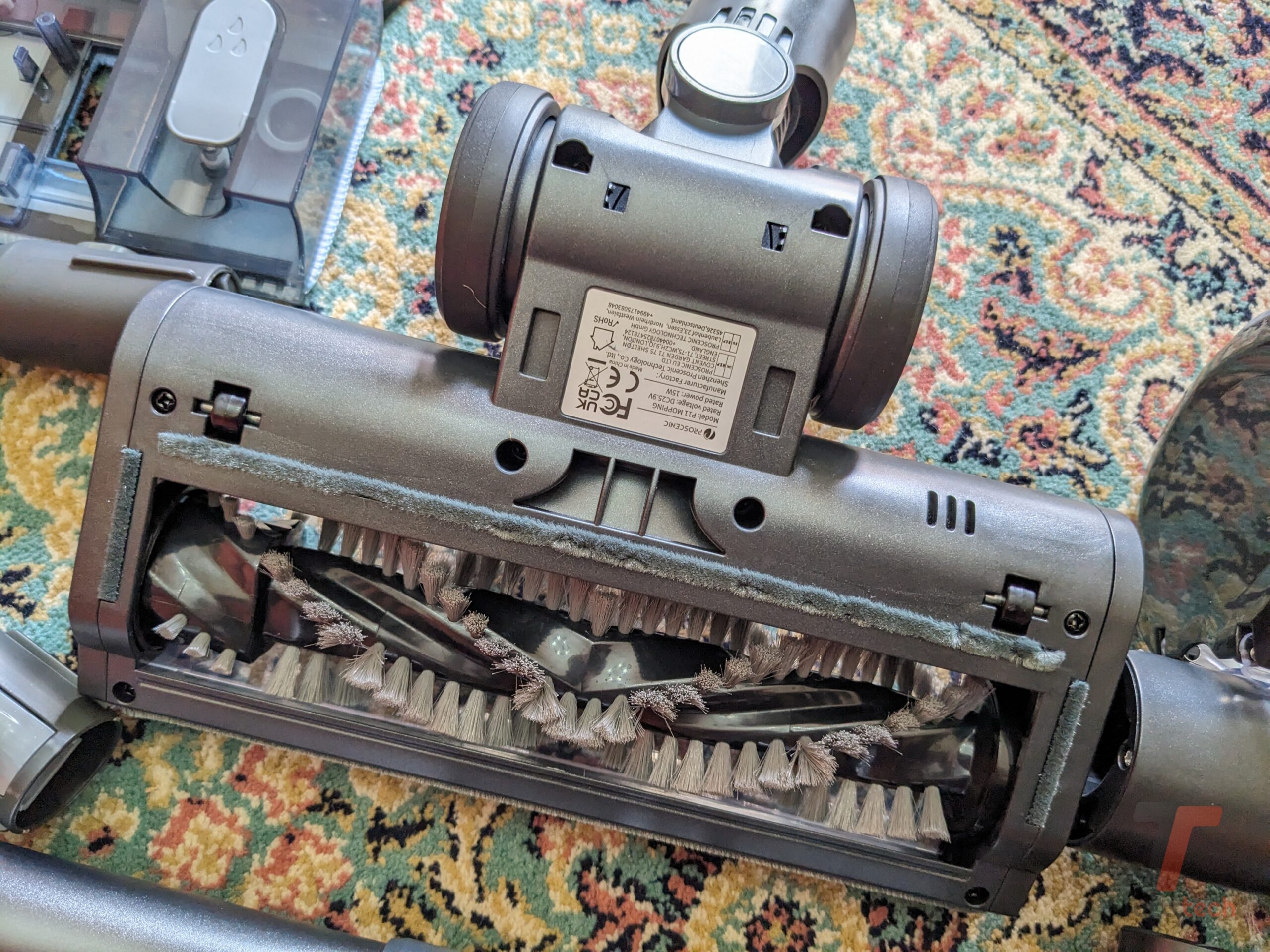 Detto questo, passiamo al suo funzionamento, che per fortuna è migliore. La scopa monta nel suo corpo principale un sistema di filtri a cinque fasi, alcuni removibili e lavabili, capaci di purificare l’aria prima che venga espulsa, una batteria removibile da 2000 mAh, un serbatoio per lo sporco da 650 ml, che può essere svuotato con un solo gesto, un display con touchscreen che mostra il livello della batteria, la modalità di aspirazione, un indicatore sulla modalità di funzionamento e avvisa nel caso in cui il serbatoio sia pieno e la spazzola intasata e soprattutto un potente motore da 400 W, capace di garantire una potenza di aspirazione pari a 35 kPa. E proprio questo è uno dei suoi punti di forza perché Proscenic P11 Mopping è molto potente e aspira qualsiasi cosa ci sia bisogno di eliminare da tappeti, divani, cuscini, pavimenti, sedie, cucina e via dicendo: lei aspira di tutto e lo fa con molta efficacia, per cui da questo punto di vista si comporta veramente bene.