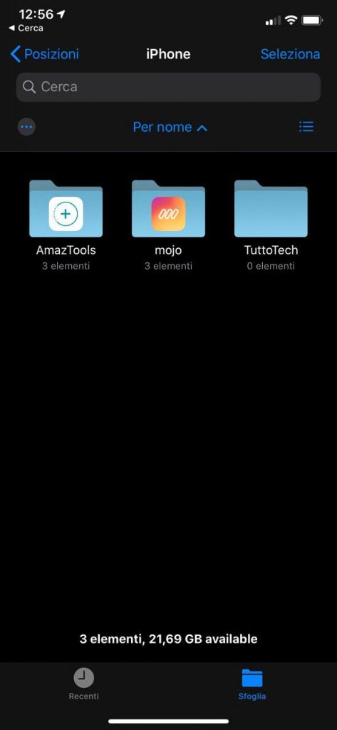 A prima vista File non è un’app speciale: somiglia molto ad altre soluzioni simili per il file management, consentendo di dare uno sguardo ai contenuti del nostro iPhone e di organizzarli. Prima dell’avvento di iOS 13 su “iPhone” non era possibile creare nuove cartelle: questo consentiva un utilizzo limitato dell’app, e costringeva gli utenti a suddividere in cartelle i propri file e documenti sul cloud, ad esempio su iCloud o Amazon Drive, o qualsiasi altro servizio di terze parti.