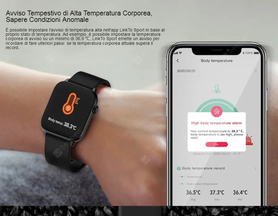 Lo smartwatch di cui vi parliamo oggi permette infatti, oltre alle classiche funzioni presenti ormai su uno modello, di rilevare la temperatura corporea in maniera decisamente affidabile. La funzione è più che mai utile in questo periodo in cui siamo chiamati a prestare attenzione anche a piccoli dettagli come l’incremento della temperatura corporea, che potrebbe indicare problemi di salute.