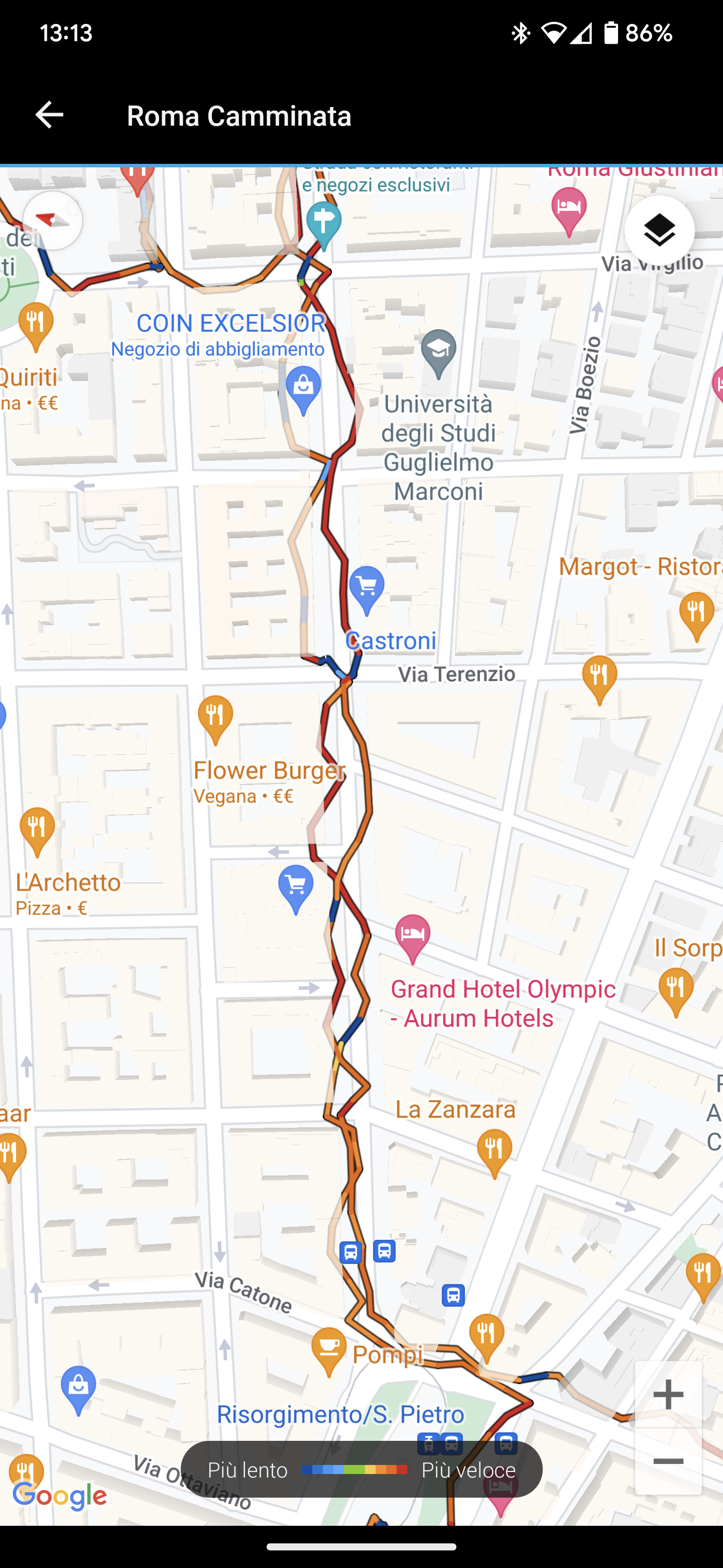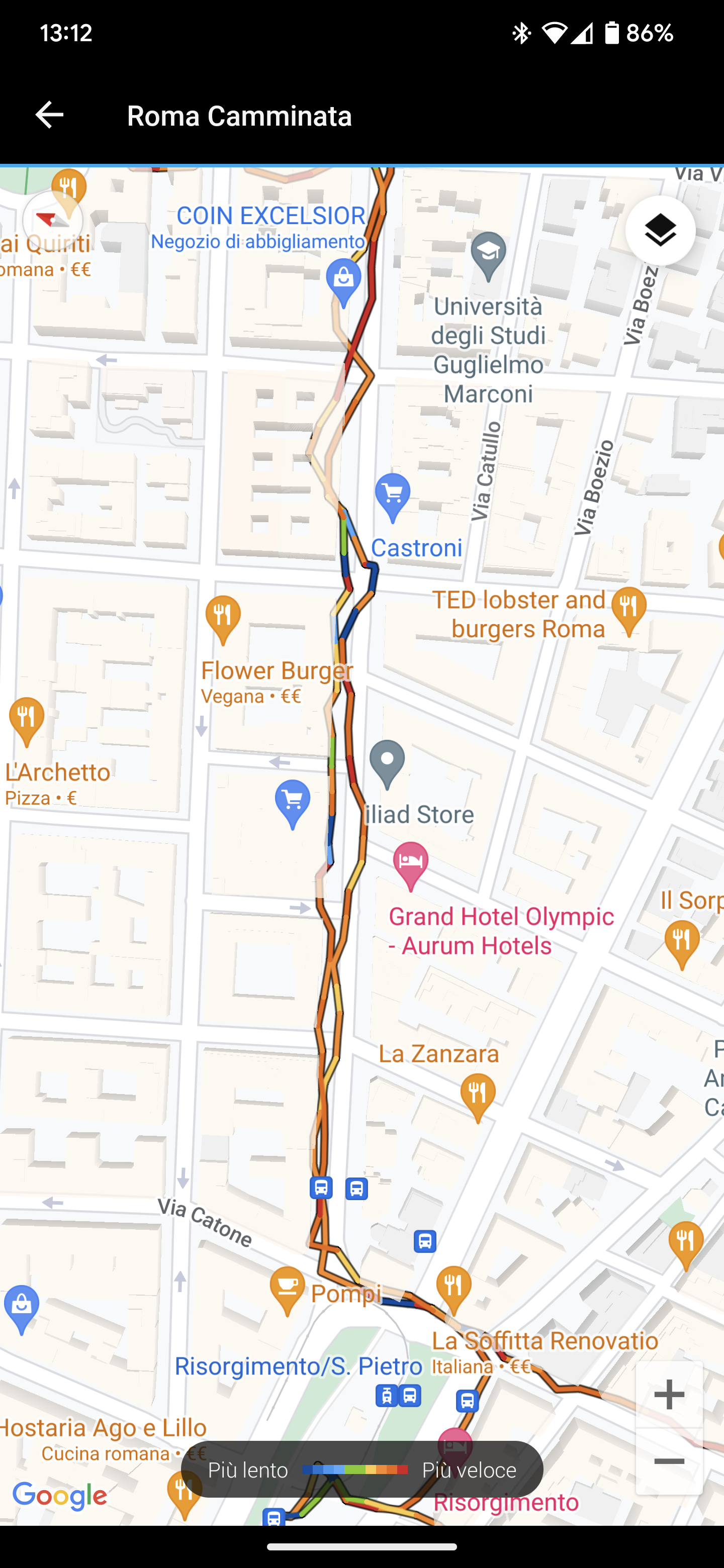 Qualche differenza col suo sodale più dotato la si nota nella boscaglia più fitta, nelle situazioni più estreme in cui il sistema di posizionamento in multifrequenza è logicamente superiore rispetto al solo GPS, o GPS + GLONASS che ho utilizzato negli allenamenti di trail running. In bici le differenze sono inferiori, specie su strada. Qualche problema con Venu 2 Plus l’ho riscontrato durante la registrazione in città (camminata con GPS + GLONASS attivo), che paragonato al sistema di tracciamento in multifrequenza di Garmin Forerunner 955 è risultato meno preciso e soggetto a errori. Per inciso, fra i palazzi il segnale non ha vita facile, anche se relativamente bassi come quelli di Roma.