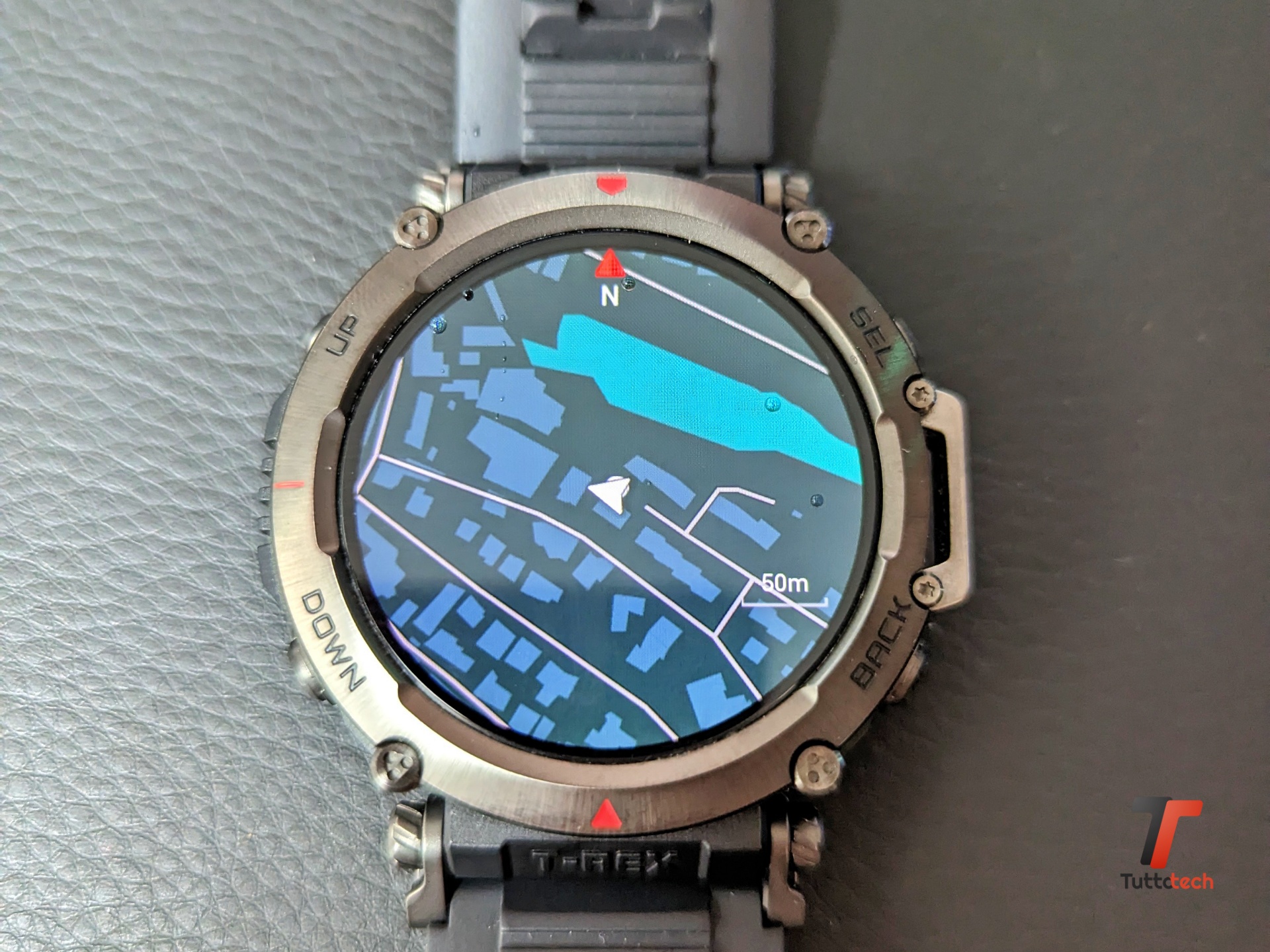 Sono molte le caratteristiche riprese dai modelli precedenti, ma anche da Amazfit Falcon, come il misuratore di battito cardiaco in grado di rilevare anche il livello di ossigeno nel sangue, la certificazione per le immersioni fino a 100 metri e la connettività Bluetooth. Da segnalare però la presenza della connessione WiFi, che può essere utilizzata per scaricare le mappe di navigazione, di cui però vi parlerò tra poco.