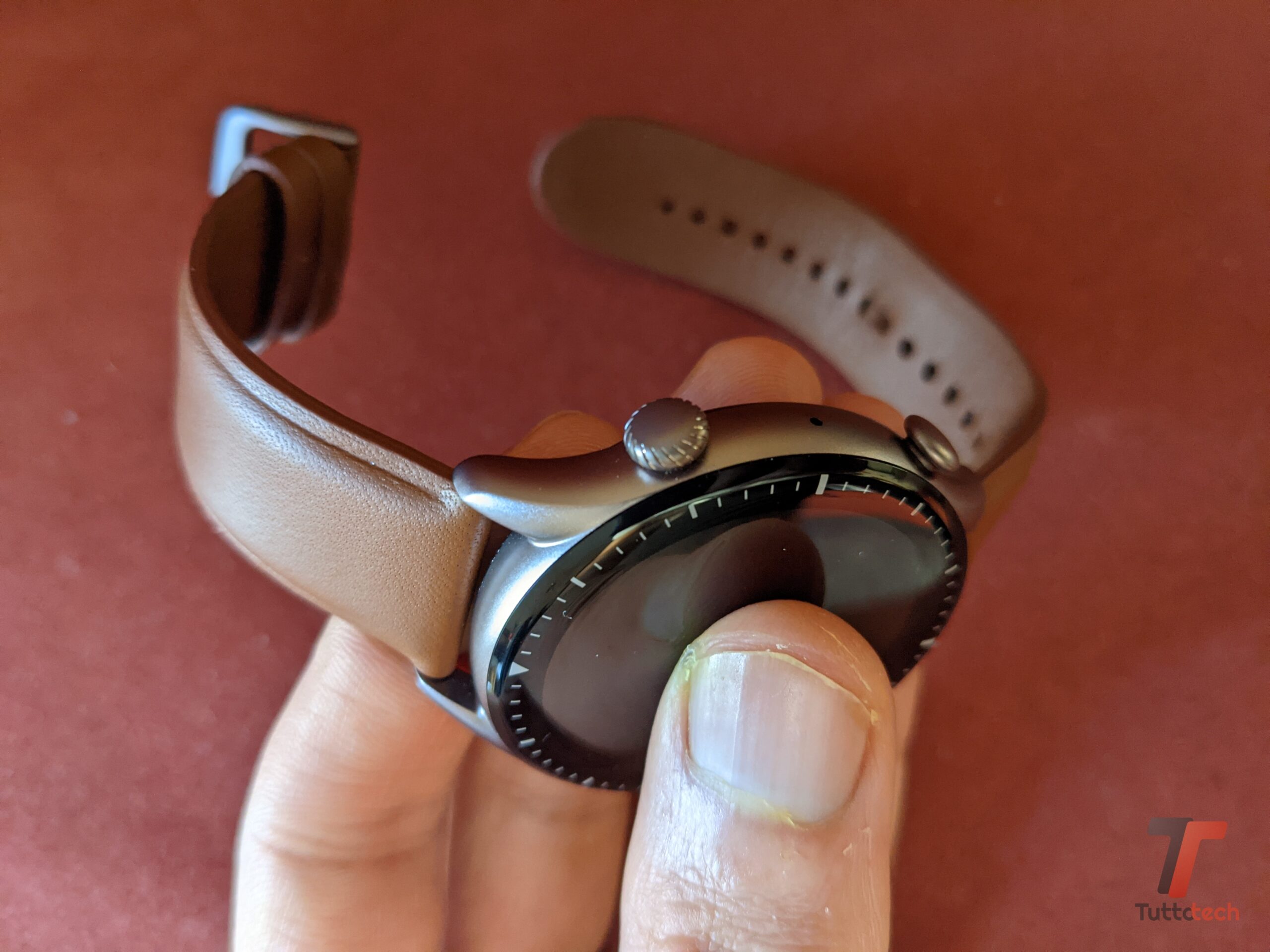 E proprio riguardo al cinturino devo sottolineare una cosa: è il primo, fra tutti quelli di smartwatch, smartband e orologi che ho avuto nei miei 32 anni di vita, a non crearmi il minimo fastidio al polso e alla pelle e per me è stata una piacevolissima sorpresa scoprire per la prima volta di poter indossare un dispositivo senza avere della fastidiosa irritazione, prurito, rossore e sudore anomalo; e non meno importante è che a distanza di settimane il cinturino è ancora come nuovo, a differenza di quelli di gomma che mostrano subito segni di usura. Non dimentichiamo, perché è importante, che è comunque discreto, anche se si fa notare, delle giuste dimensioni e leggero, tanto da sparire dai pensieri dopo qualche ora che è al polso.
