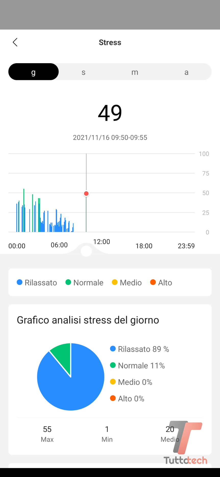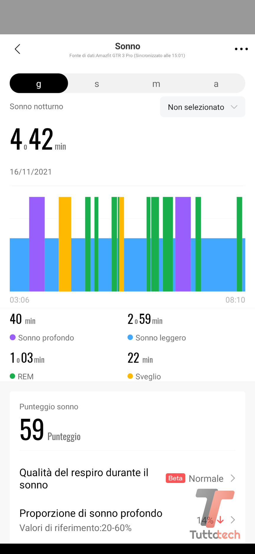 Sarà ZeppOS, sarà la batteria da 450 mAh o sarà qualche altra cosa, fatto sta che Amazfit GTR 3 Pro dura tanto. Si ricarica tramite una basetta magnetica in circa 2 ore ed è capace di restare in vita anche per una quindicina di giorni d’uso normale, di media intensità diciamo, con tutte le misurazioni attive, qualche notifica, un po’ di accensioni del display e qualche allenamento breve. E questo è un risultato incredibile per uno smartwatch. L’autonomia cala drasticamente, ovviamente, se si aumenta la frequenza delle misurazioni, se si aumenta la luminosità, se si incrementa il numero di allenamento, magari con l’uso dell’A-GPS e, sopratutto, se si attiva l’always-on-display (che è personalizzabile): in questo caso ci si può aspettare un’autonomia che va dai 4-5 ai 7-8 giorni al massimo, dipende sempre da un po’ di fattori. L’autonomia in ogni caso è alta e permette di non avere grattacapi, limitazioni e di dover vivere costantemente con l’ansia del caricabatterie attaccato.