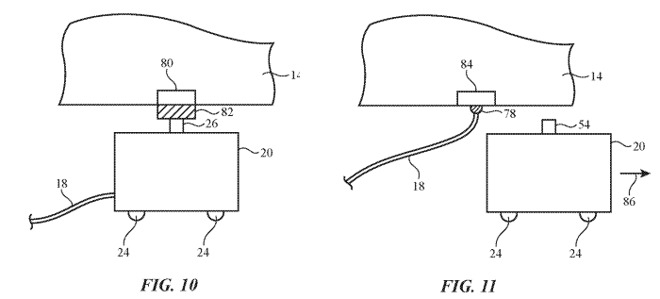 Nella domanda di brevetto, Apple afferma che quando si tratta di trasferire energia tra una fonte di alimentazione e le apparecchiature che richiedono alimentazione, di solito un utente deve collegare manualmente un cavo, e quando non è presente un cavo di alimentazione, l’utente deve allineare l’apparecchiatura per l’alimentazione con una fonte di ricarica wireless, proprio come quando utilizziamo uno smartphone come il nuovo iPhone 11 provvisto di ricarica wireless e dobbiamo posizionarlo correttamente su di un pad QI.