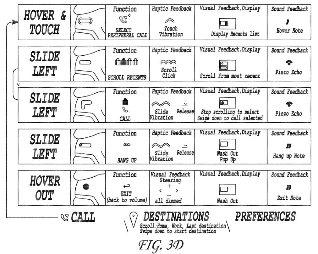 Interagendo con l’interfaccia utente fornita sul volante, l’utente può selezionare, aggiornare e / o navigare attraverso un menu di controlli. Inoltre, in base ai gesti eseguiti e riconosciuti dall’interfaccia utente, l’utente può anche ricevere feedback sulle selezioni effettuate rispetto all’insieme o al menu dei controlli. Questa interazione dell’utente può manifestarsi attraverso movimenti di gesti effettuati direttamente sull’interfaccia utente e / o sulla base dell’indicazione dell’intenzione dell’utente di interagire con l’interfaccia utente che può essere stimata accertando quando le cifre dell’utente si avvicinano all’interfaccia utente. Ad esempio, attraverso i sensori di prossimità, l’interfaccia utente può rilevare che la cifra dell’utente si sta avvicinando a una funzionalità di manipolazione del controllo sull’interfaccia utente, facendo sì che l’interfaccia utente fornisca un feedback all’utente.