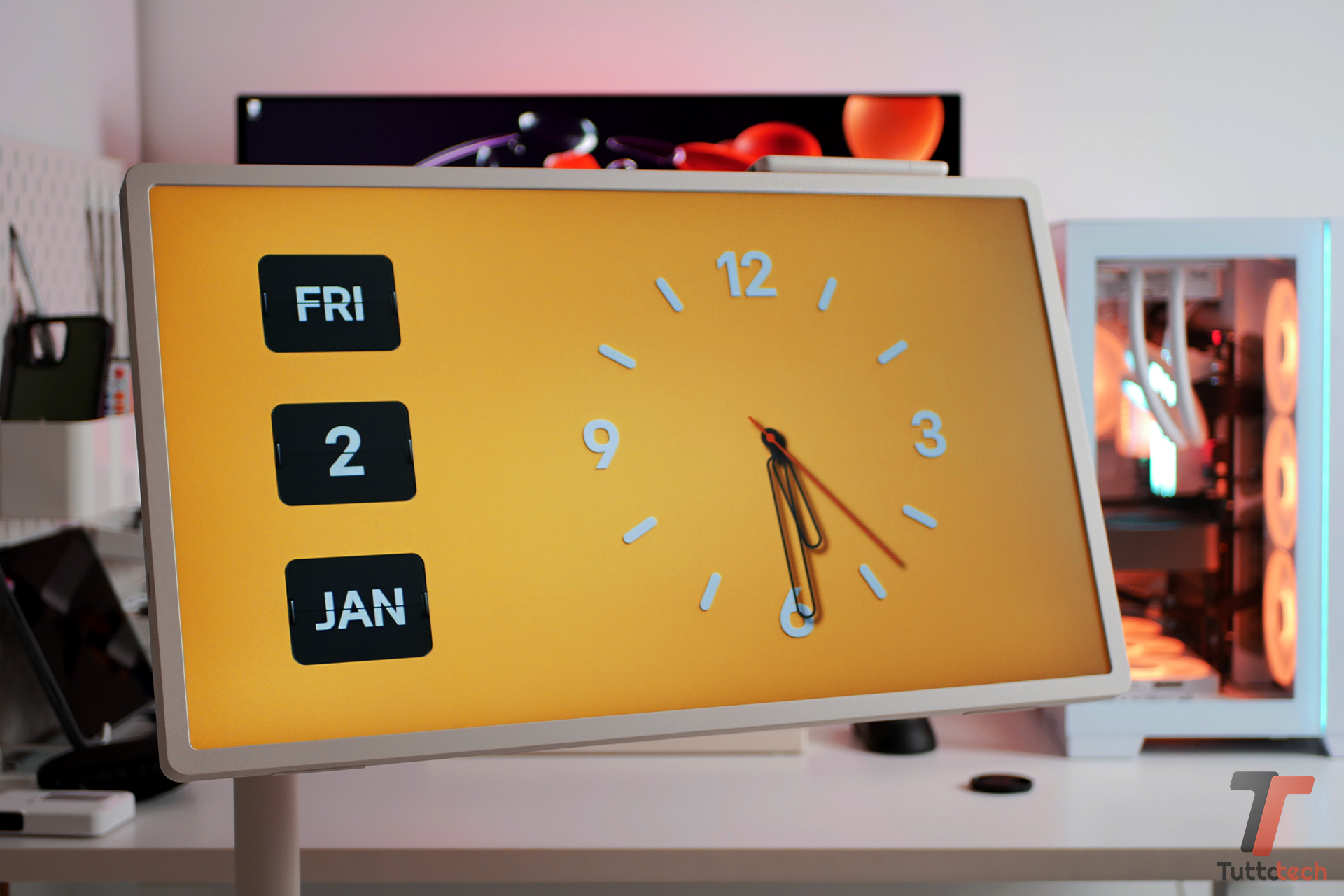 Infine, c’è l’uso più silenzioso, ma forse più interessante: quello di presenza visiva. Quando non viene utilizzato attivamente, StanbyME 2 può restare acceso con contenuti grafici, immagini, arte digitale, diventando una sorta di elemento decorativo dinamico. Uno schermo che non “sparisce” quando non serve, ma che cambia ruolo, restando parte dell’ambiente.