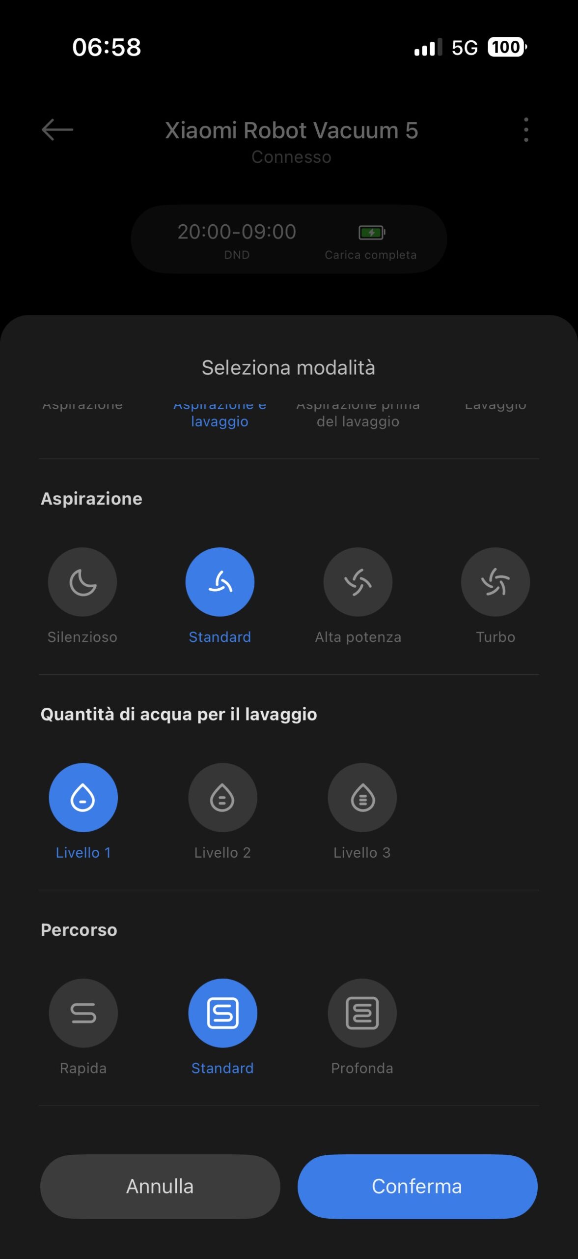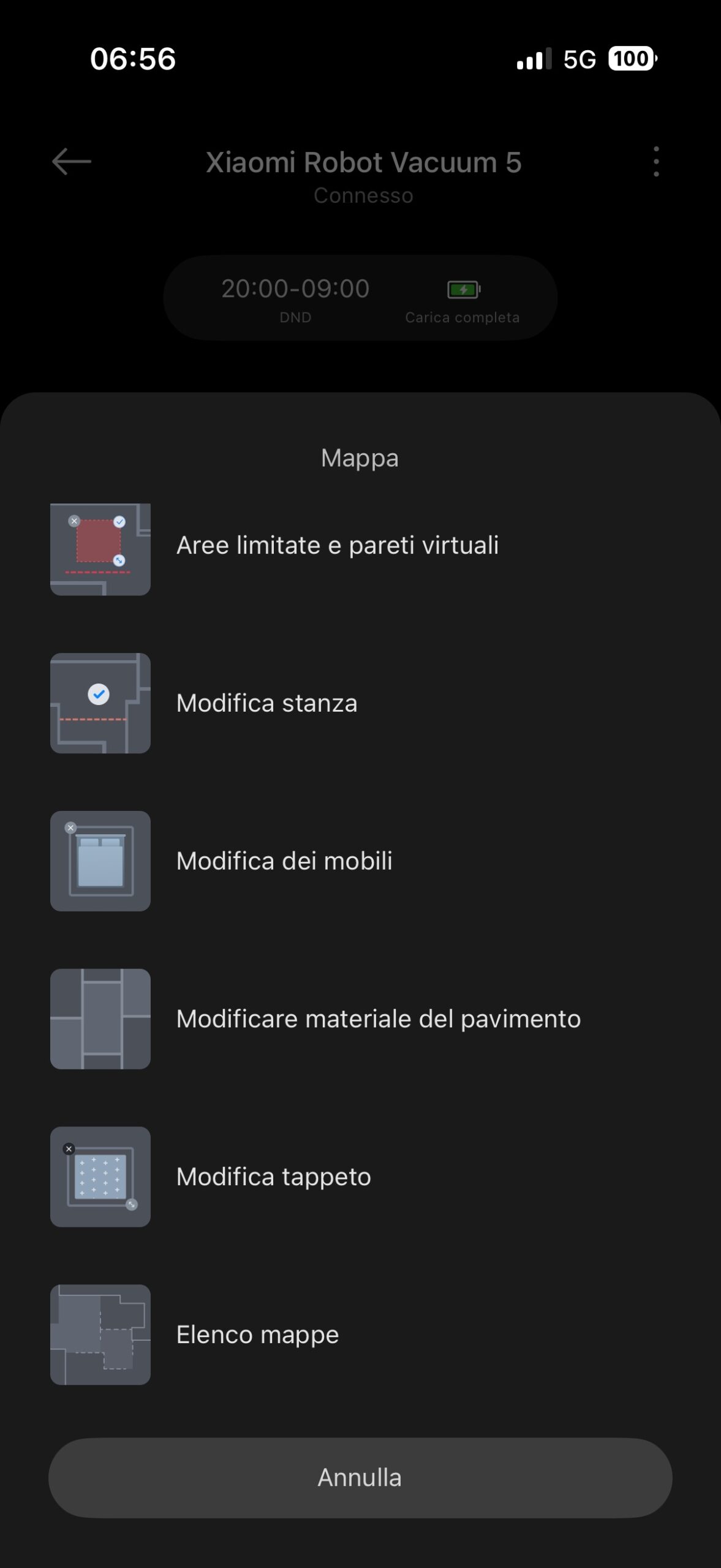 Il controllo dello Xiaomi Robot Vacuum 5 passa dall’app Xiaomi Home, un’applicazione matura e completa: dopo la mappatura iniziale si gestisce tutto in modo intuitivo, dalla suddivisione delle stanze (unirle o separarle) alla definizione di zone vietate e aree senza lavaggio utili per proteggere tappeti delicati o zone con molti cavi.