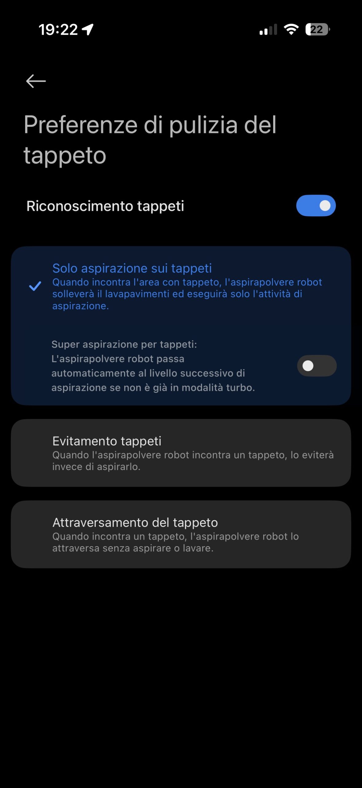 Sui tappeti, il comportamento è nella norma: l’alzata del mop di 15 mm è sufficiente per la maggior parte dei tessuti a pelo corto e medio, mantenendo le fibre asciutte durante il lavaggio dei pavimenti circostanti. Quanto alle soglie, questo modello non integra la funzione di superamento automatico e sui dislivelli più marcati può arrestarsi; se questa è una caratteristica richiesta, è necessario valutare lo Xiaomi Robot Vacuum 5 Pro.