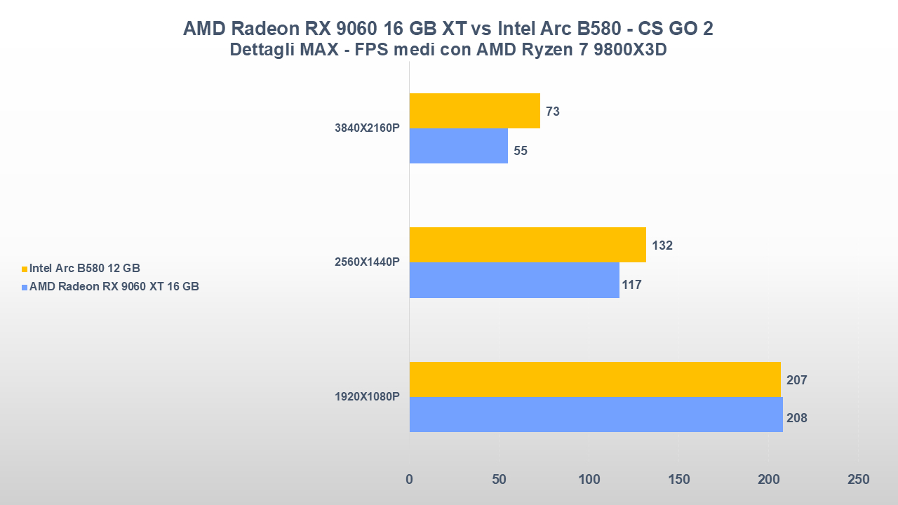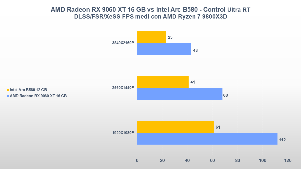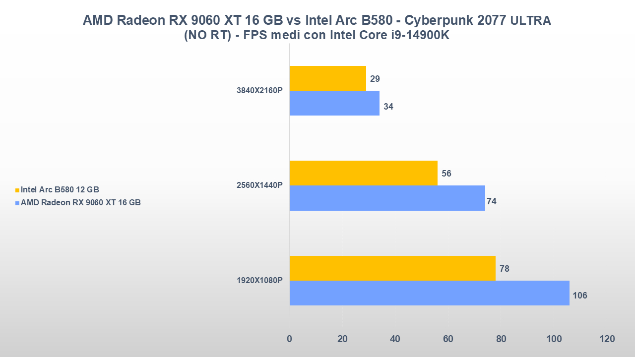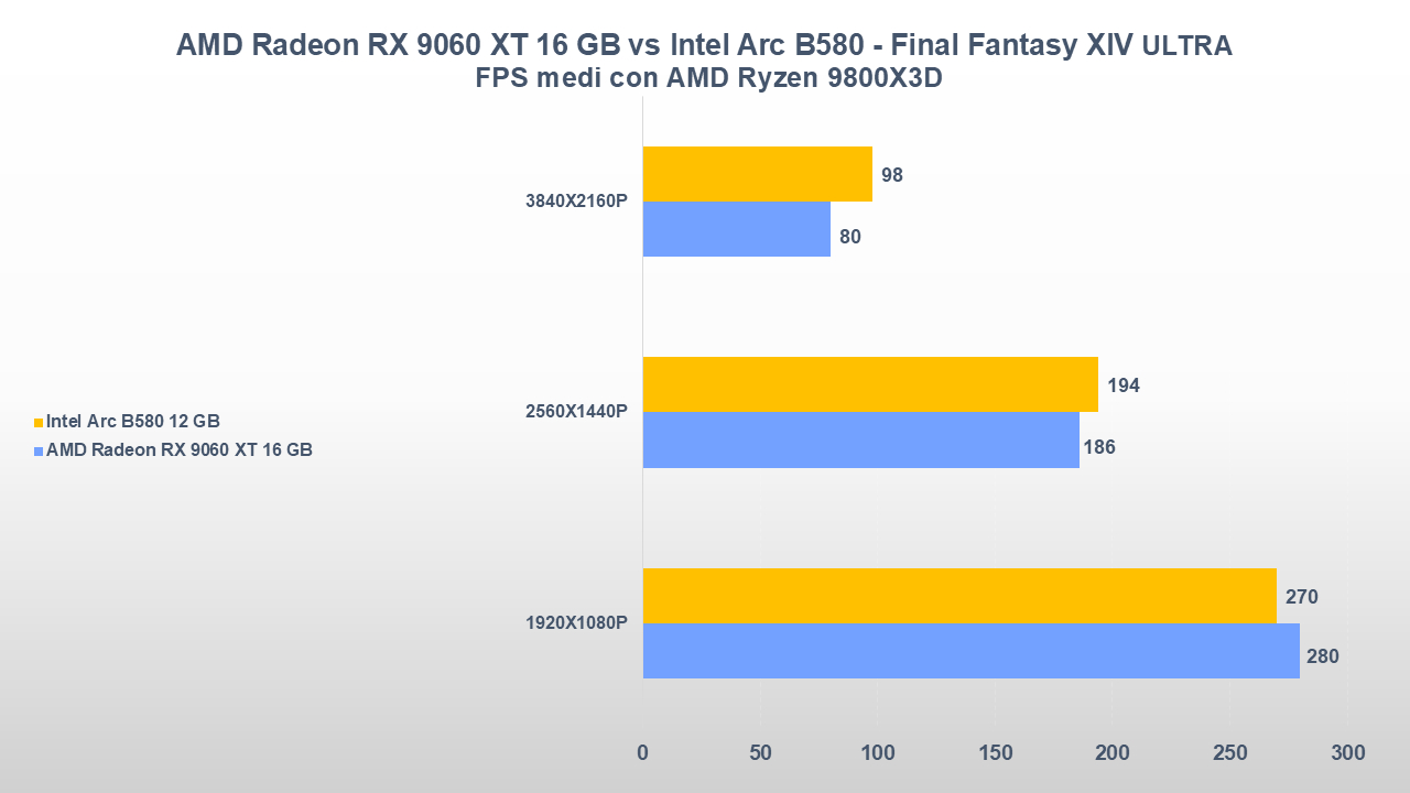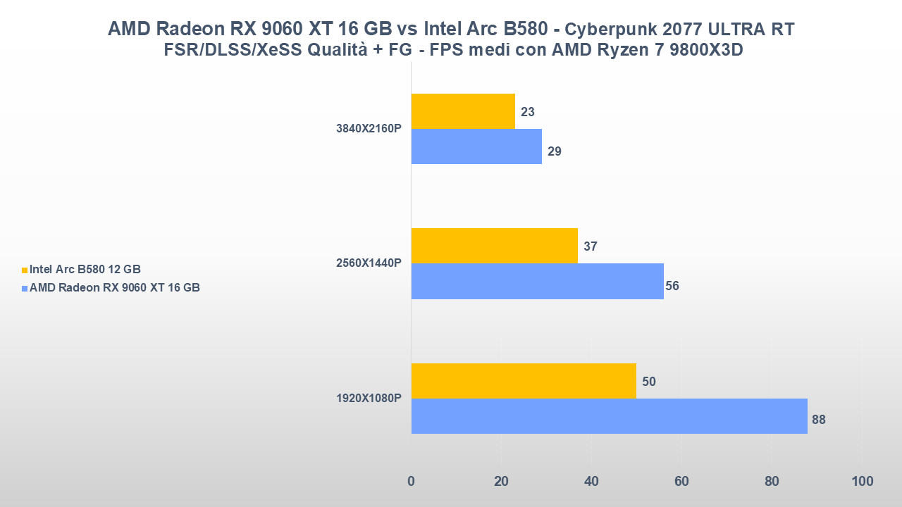 - AMD Radeon RX 9060 XT 16 GB vs Intel Arc B580: media prestazioni nei giochi