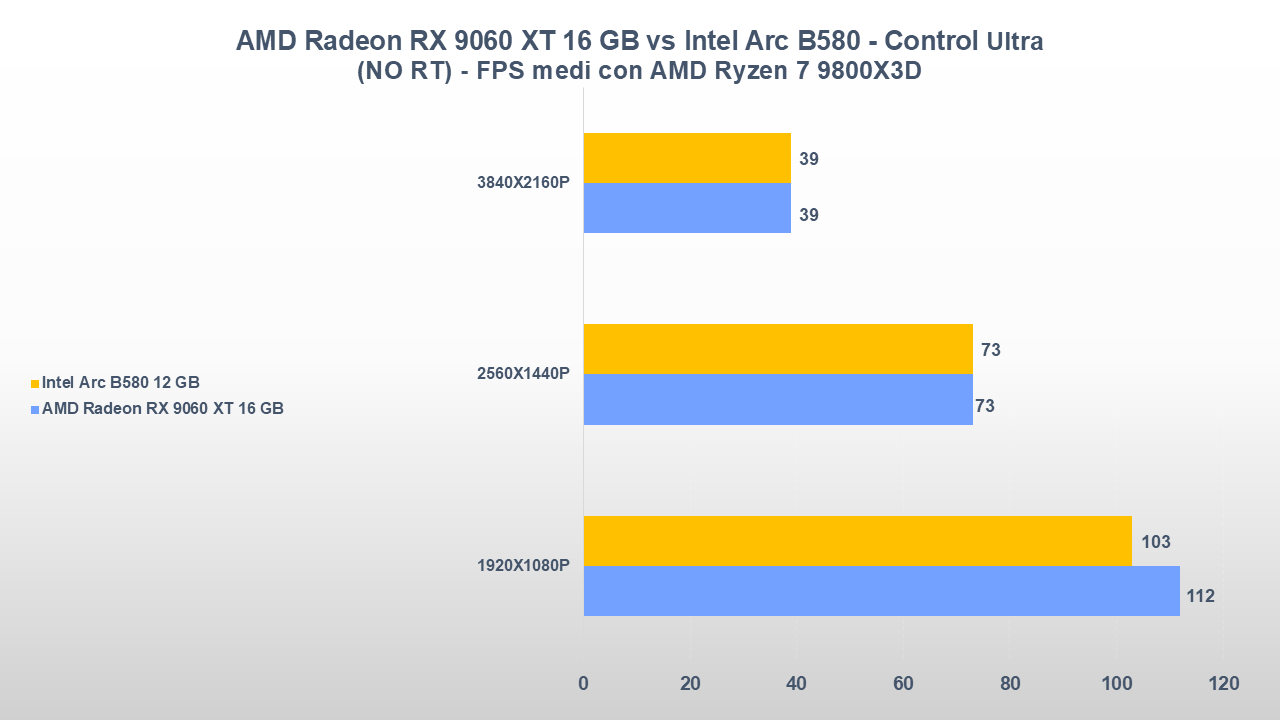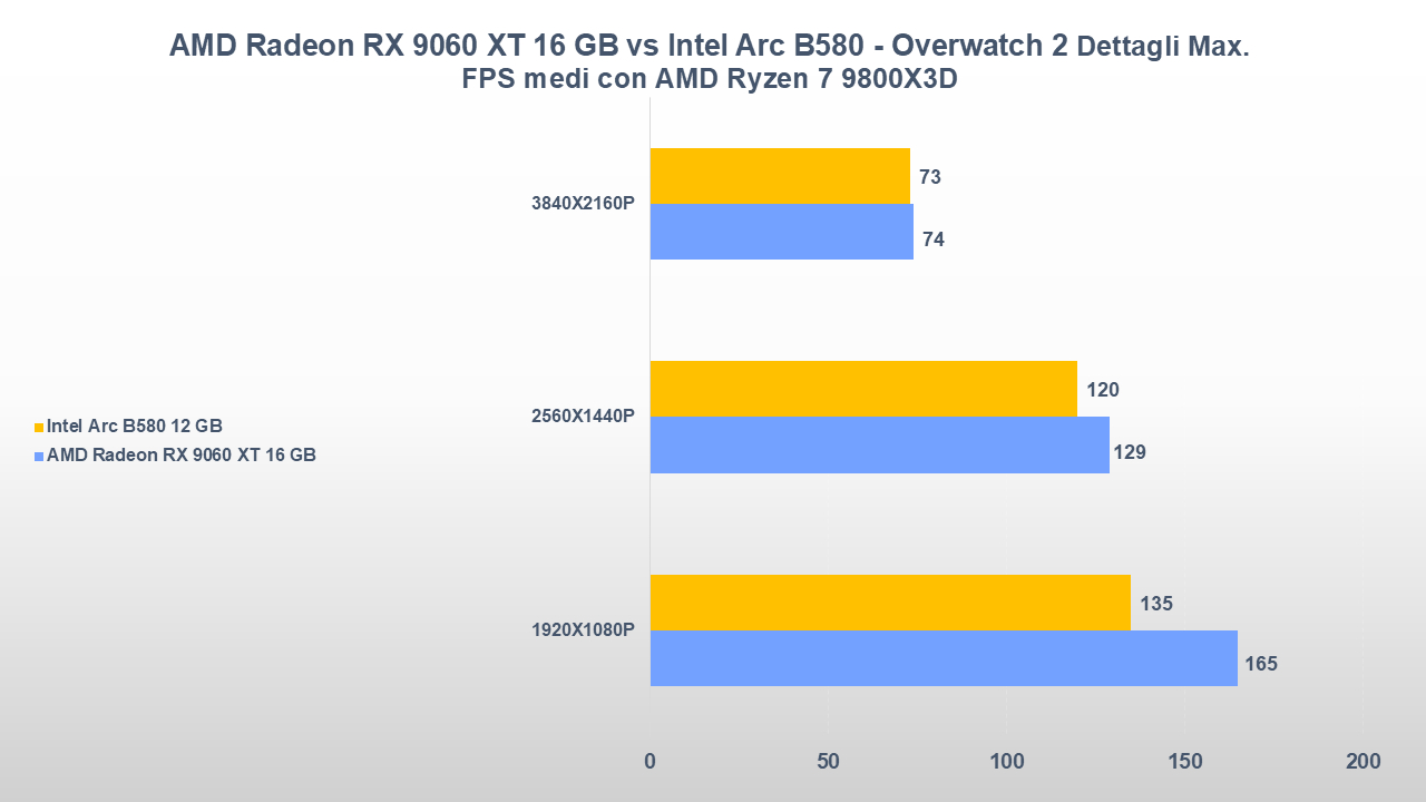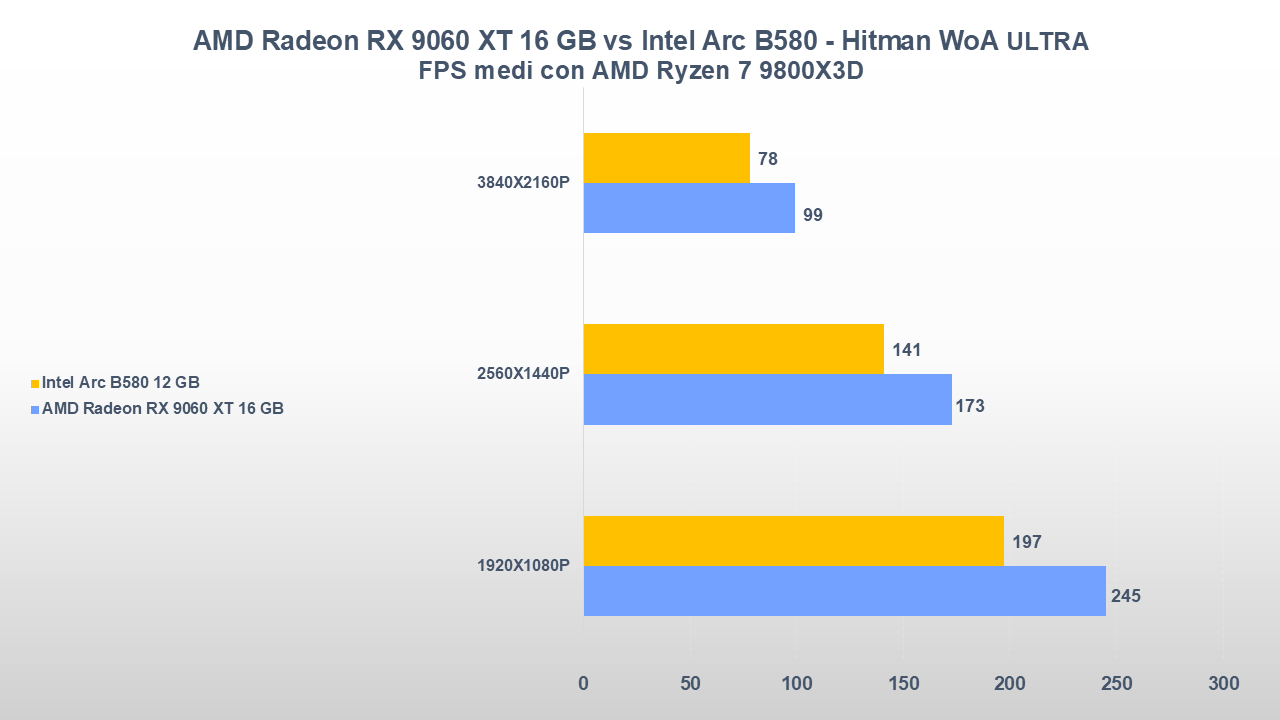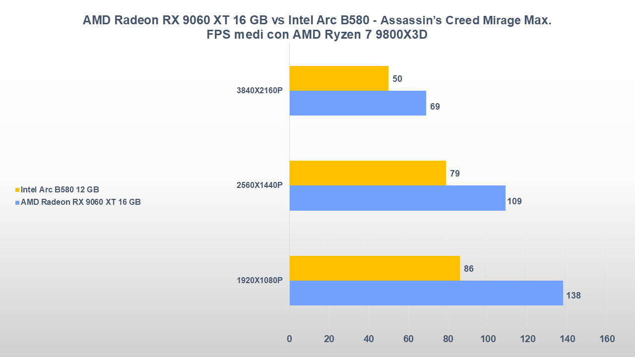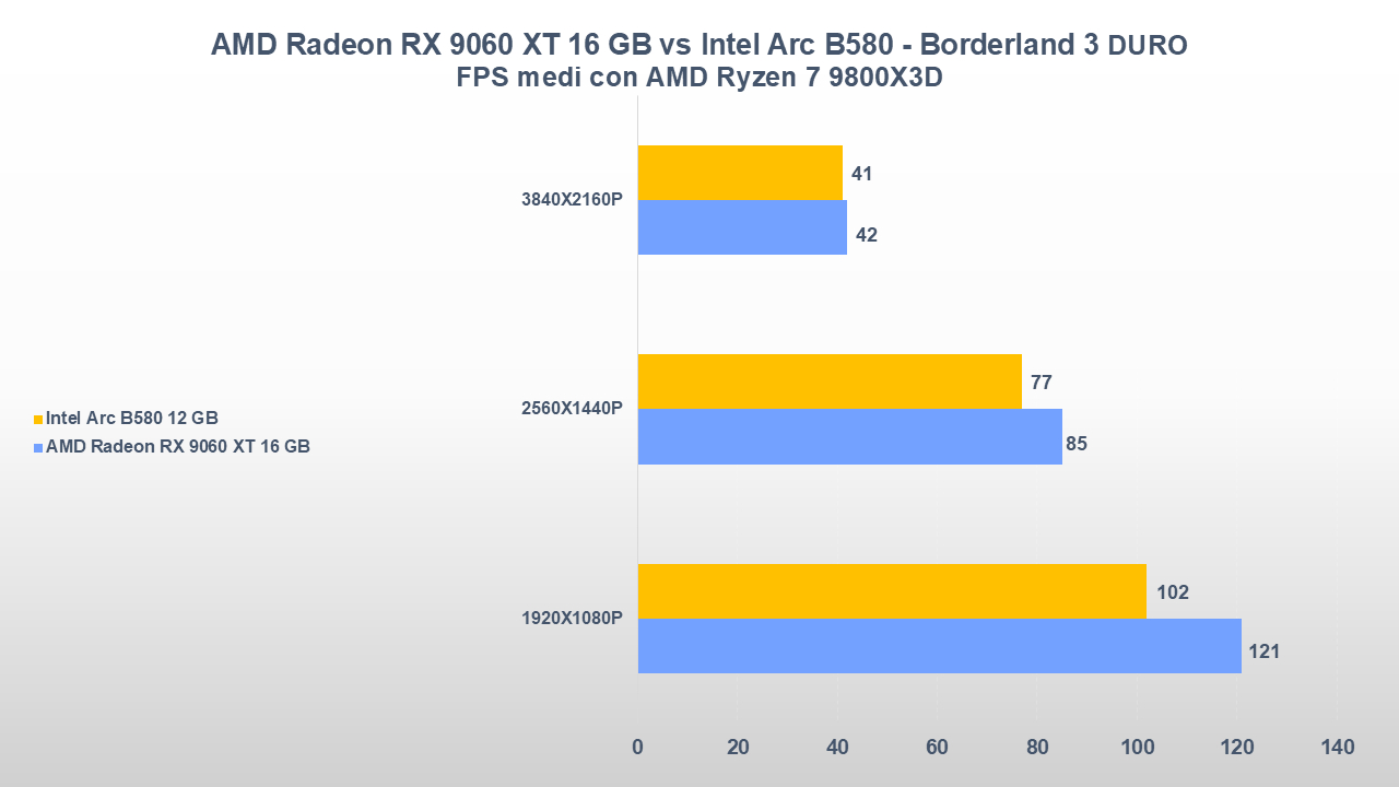 - AMD Radeon RX 9060 XT 16 GB vs Intel Arc B580: media prestazioni nei giochi