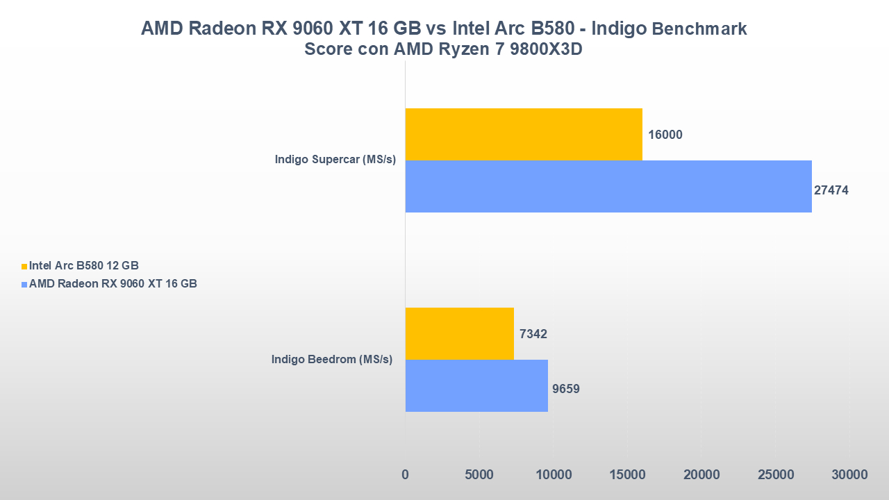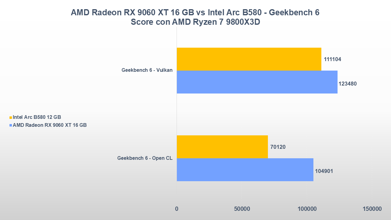 AMD Radeon RX 9060 XT 16 GB vs Intel Arc B580 – Calcolo e Produttività