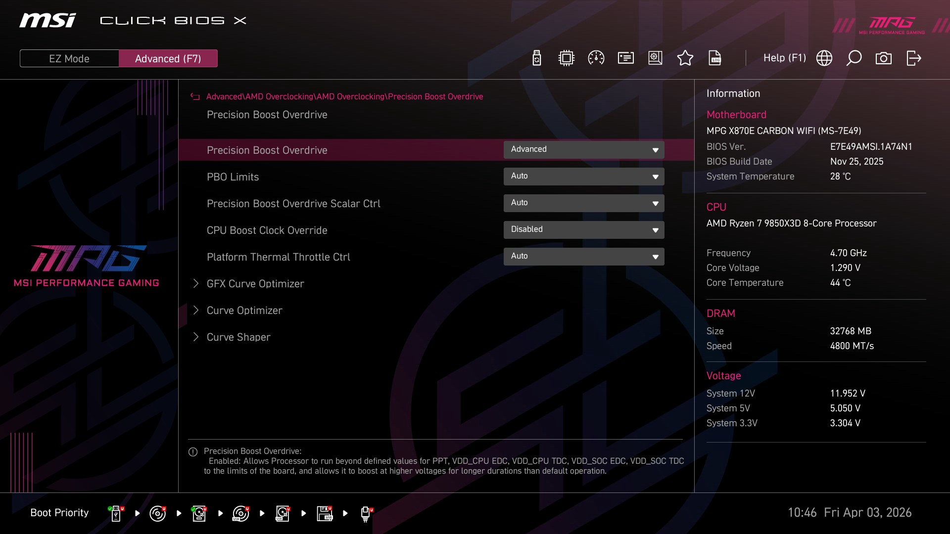 - Precision Boost Overdrive Scalar: 10X